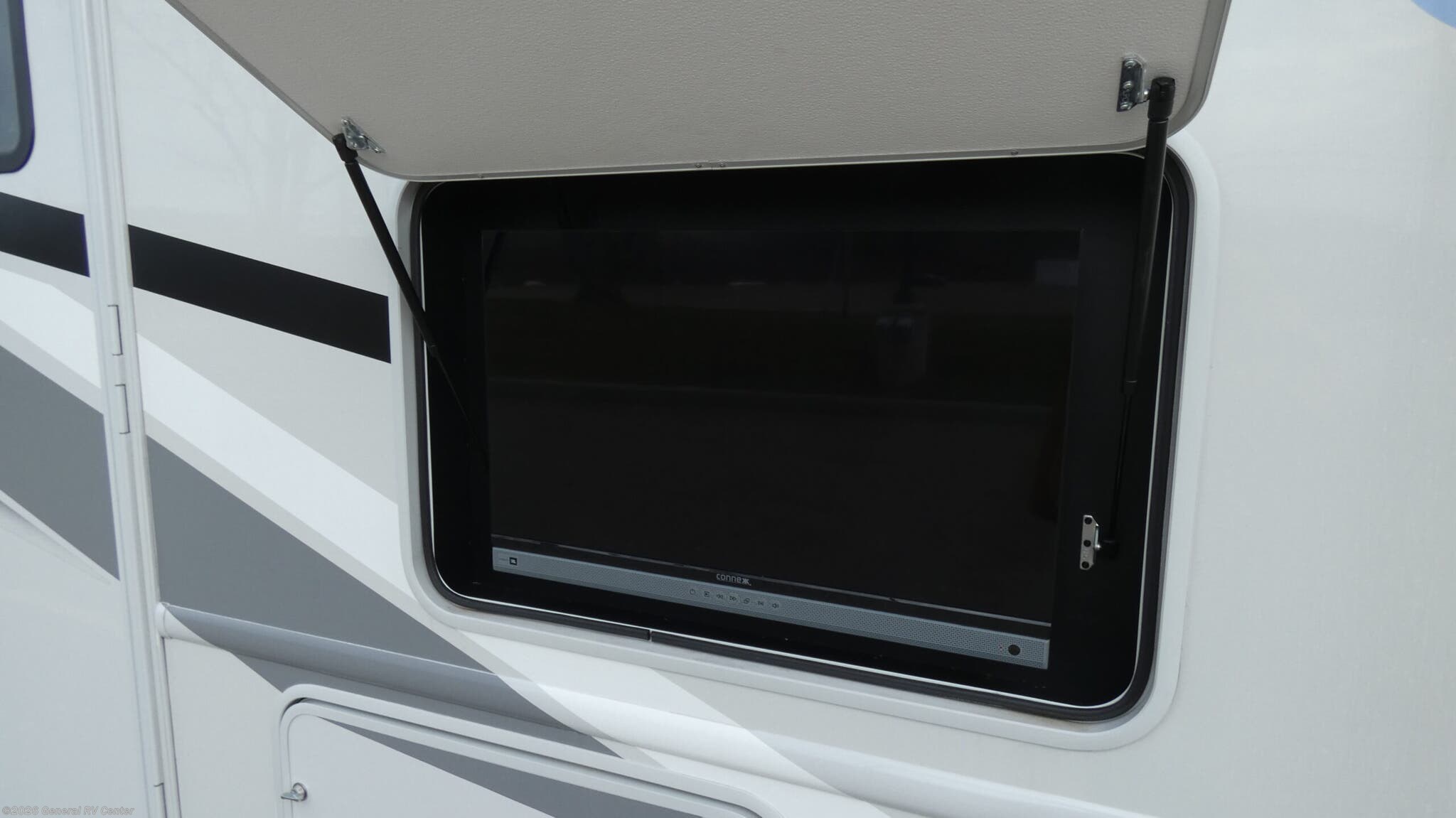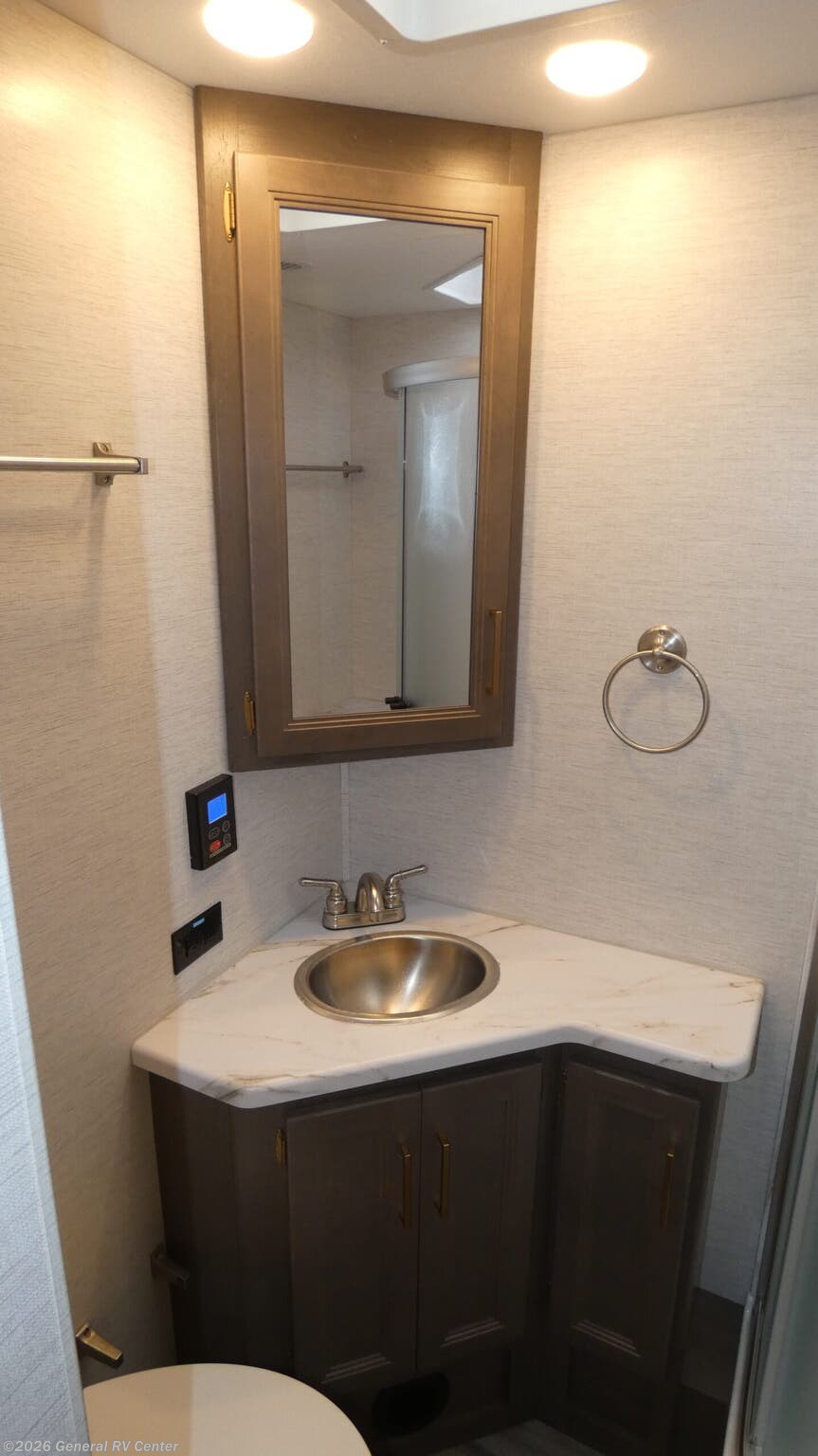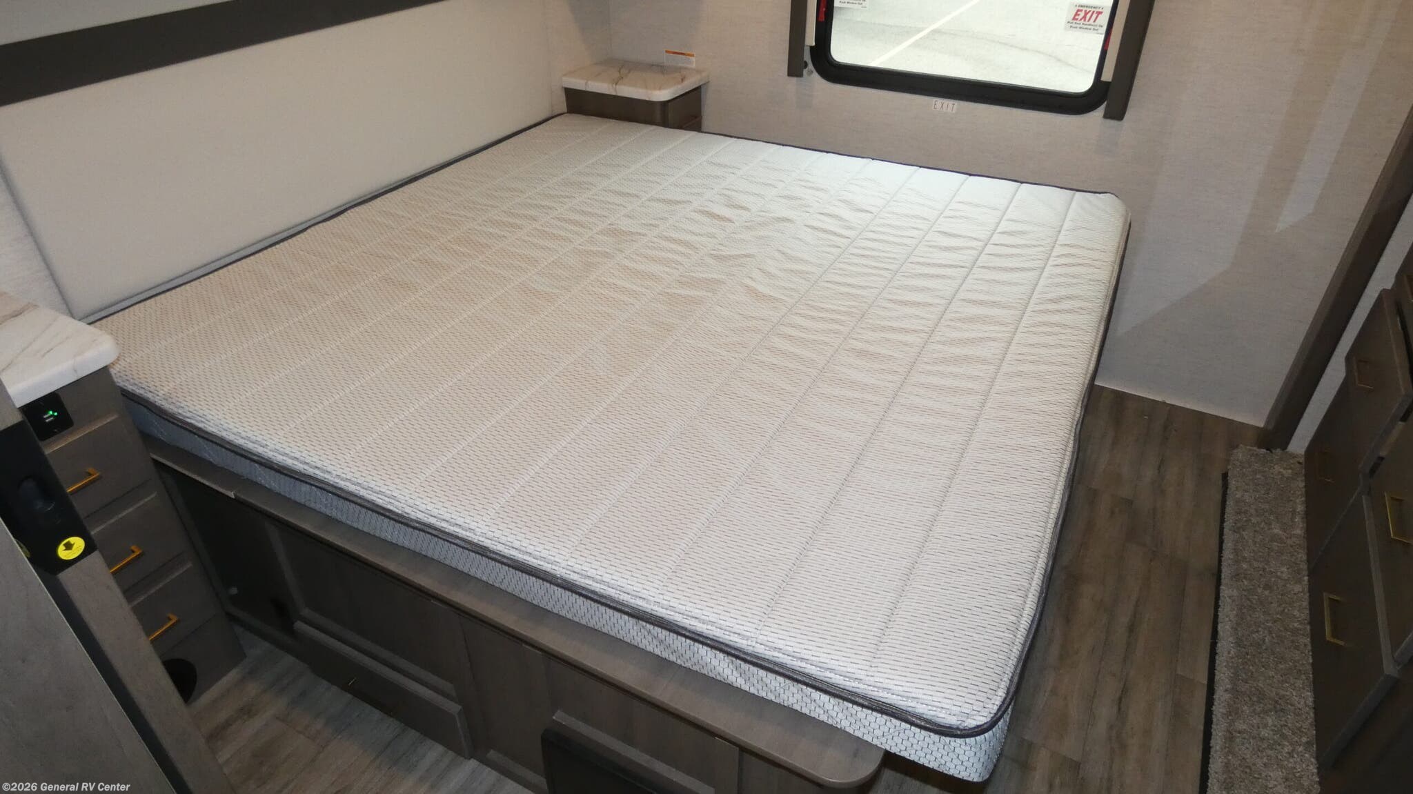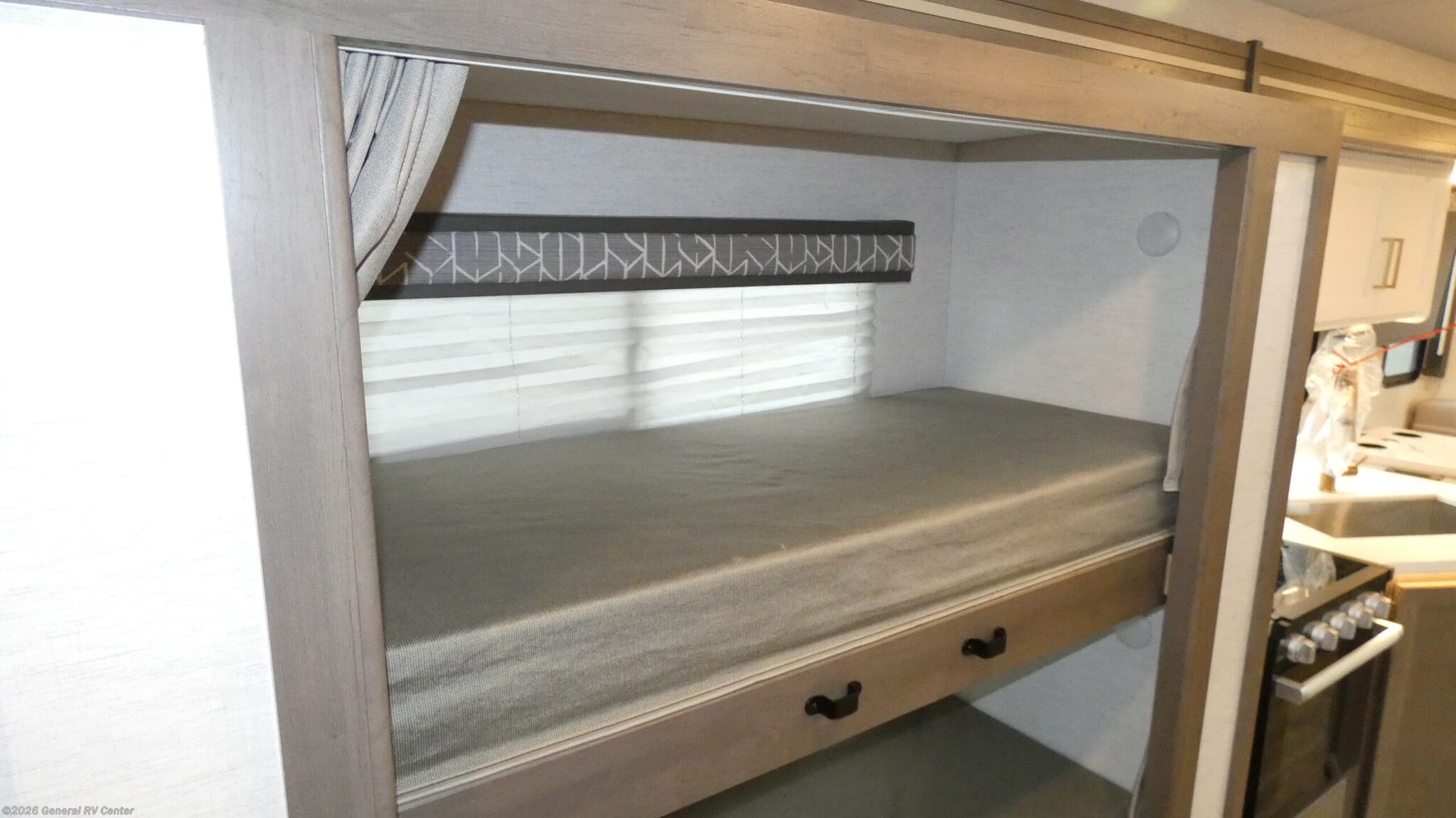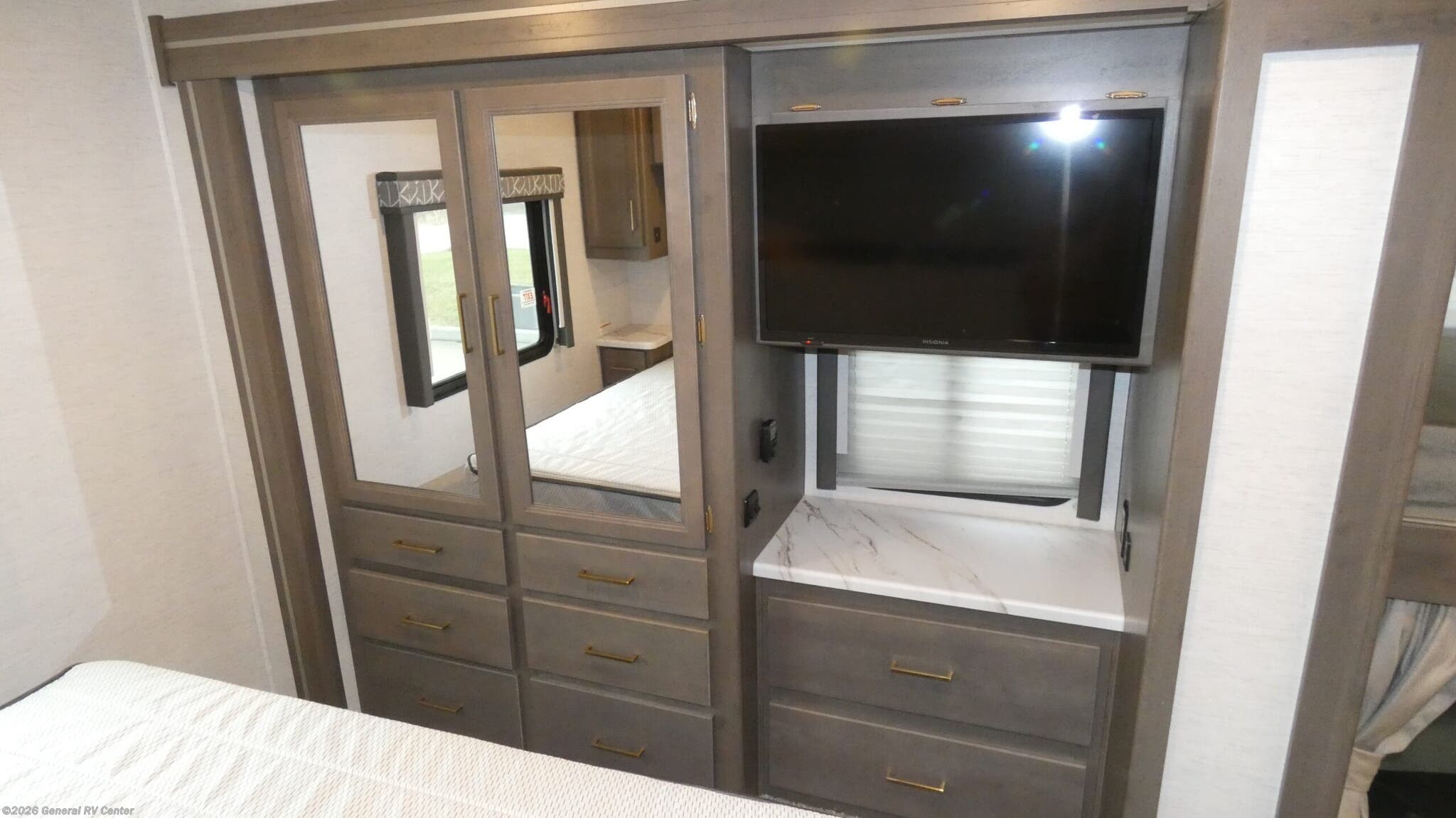 Step into the future of RV living with the 2025 Thor Motor Coach Resonate 32B. This stunning motorhome is designed for families and groups who crave adventure without sacrificing comfort. With a spacious layout that sleeps up to 10, including a luxurious king-sized bed and cozy bunks, everyone can rest easy after a day of exploration. The front living area is perfect for gathering, featuring a 68" dream dinette and a jack-knife sofa, both convertible for additional sleeping space. The center kitchen, equipped with a mid-size refrigerator and a three-burner cooktop, ensures you can whip up delicious meals on the go. The Resonate 32B is built on the robust Ford F53 chassis, boasting a powerful 350 horsepower engine and a towing capacity of 8,000 pounds, making it a reliable companion for all your journeys. The 19 ft. powered retractable awning creates an inviting outdoor space, perfect for relaxing and enjoying the scenery. With a thoughtful design that includes a center bath and rear bedroom, along with ample storage and modern amenities, this RV is your ticket to a life of adventure and comfort. For more details, visit your nearest General RV dealership and start your journey today!