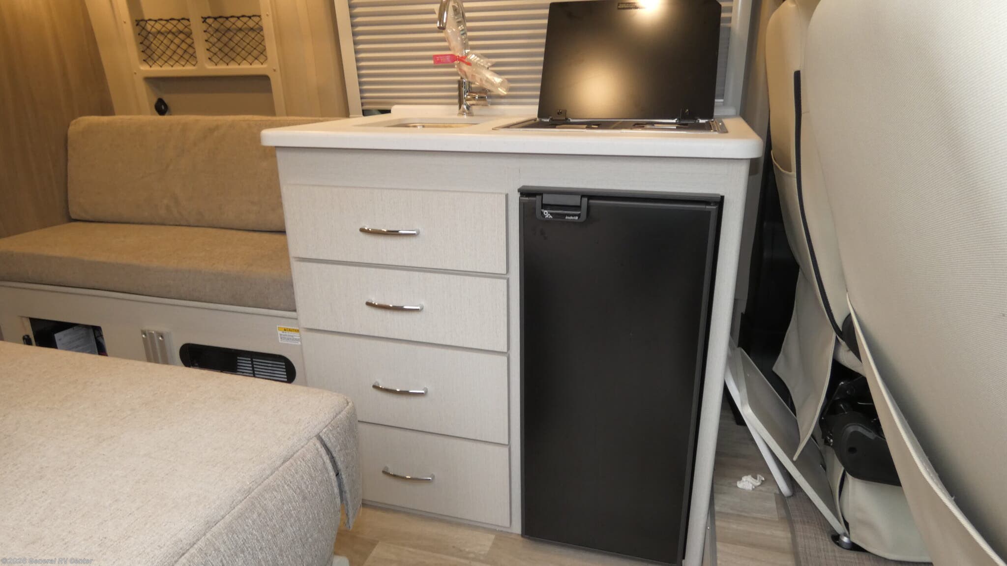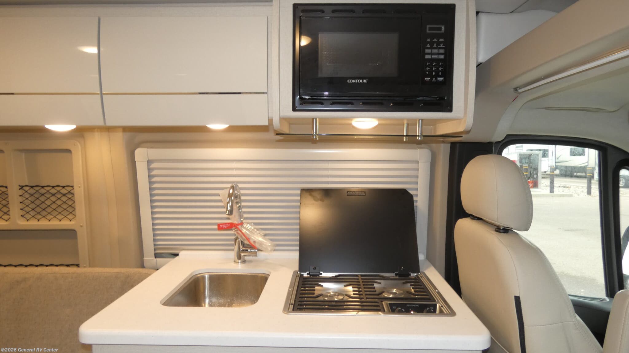 Experience the ultimate in compact luxury with the 2025 Thor Motor Coach Rize 18G. This sleek and efficient RV is built on the reliable ProMaster 1500 chassis, powered by a robust Pentastar VVT V6 engine. With a length just shy of 18 feet, it offers the perfect blend of maneuverability and comfort, making it ideal for both urban adventures and countryside retreats. The interior is thoughtfully designed with a center kitchen and living area, featuring a compact refrigerator and a two-burner cooktop for all your culinary needs. The powered retractable awning invites you to enjoy the outdoors, providing shade and shelter wherever you roam. Inside, the Rize 18G boasts a clever layout with expanding sleeper sofas that comfortably sleep up to four, ensuring a restful night after a day of exploration. The rear wet bath maximizes space while providing all the essentials for freshening up on the go. Swivel chairs add versatility and comfort to the living area, allowing you to relax and enjoy the journey. With a 20-gallon fresh water capacity and efficient tank systems, this RV is ready for extended trips. Whether you're a weekend warrior or a full-time traveler, the Rize 18G is your gateway to adventure. For more information, visit your nearest General RV dealership.