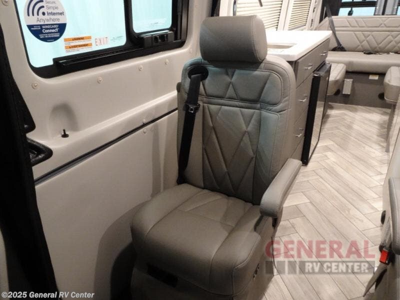 With any Sanctuary Class B diesel motorhome, you can explore off-grid thanks to the solar charging system which includes a 200-watt solar panel and charge controller to keep your house batteries full without overcharging. The Winegard ConnecT 2.0 works as your WiFi extender, 4G hotspot, and TV antenna in case you need to stay connected, plus each model is HS/DDS satellite and cable TV ready if you want to add entertainment. Inside, you'll enjoy light weight cabinetry, cassette shades, black out window coverings, and Euro-style upper cabinet doors for a more modern look.