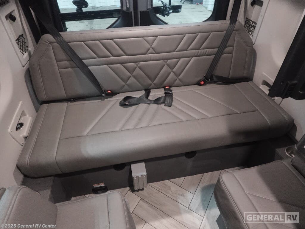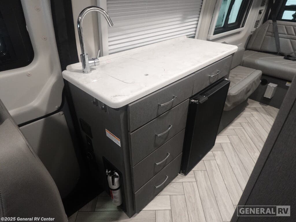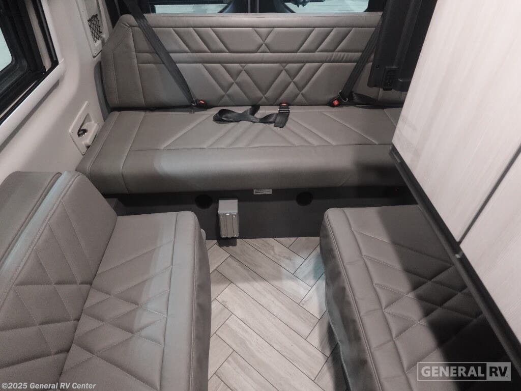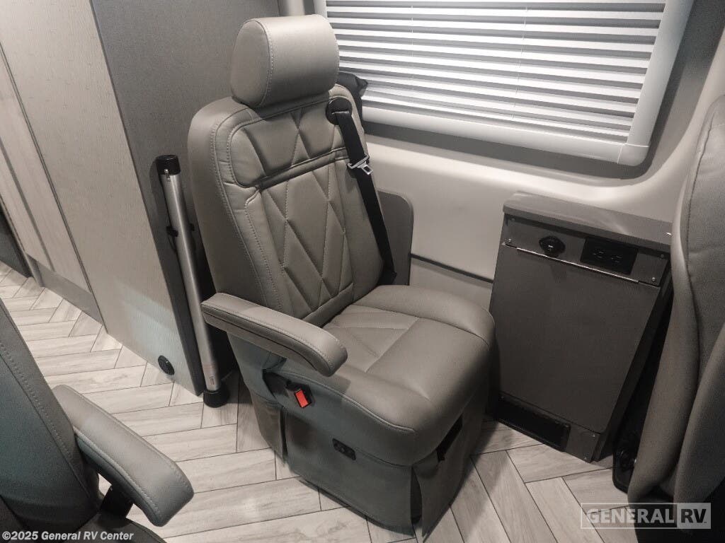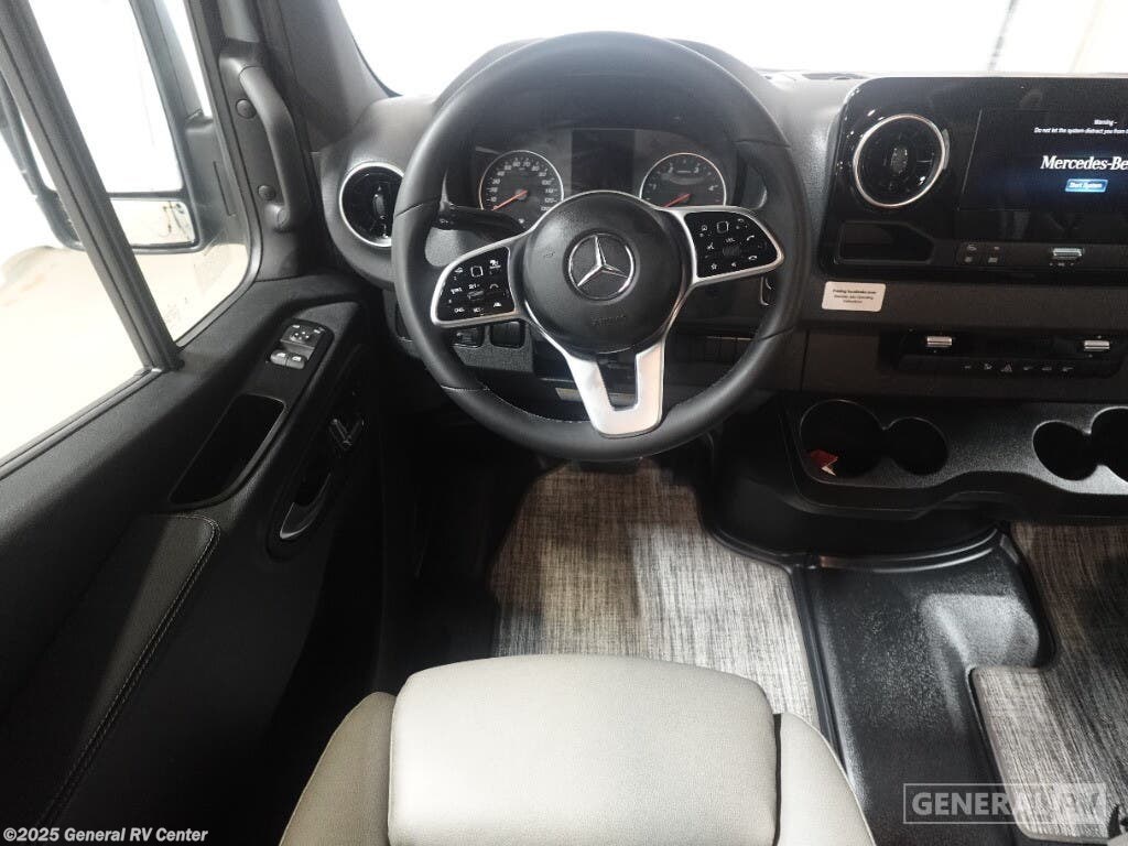 Step into the 2025 Thor Motor Coach Sanctuary 24C, where sophistication meets practicality in a compact yet luxurious design. This RV, built on the reliable Mercedes-Benz Sprinter 3500 chassis, offers a seamless blend of comfort and utility. With an impressive length of just over 24 feet, it is perfect for those who crave adventure without sacrificing the comforts of home. The front living area features swivel chairs and a versatile flip-up countertop, creating a welcoming space for relaxation or entertainment. The center kitchen, equipped with a mid-size propane refrigerator and a single cooktop burner, ensures you have all the essentials to prepare delightful meals on the road. The Sanctuary 24C is designed for two, offering a convertible sleeping area that promises restful nights under the stars. The center bath, with its convenient shower curtain setup, ensures privacy and functionality. With ample storage, including a closet and portable table locations, every inch of this RV is thoughtfully utilized. The 14-foot powered retractable awning extends your living space to the outdoors, making it ideal for enjoying the scenery at your favorite campsite. Whether you're embarking on a cross-country journey or a weekend getaway, the Sanctuary 24C is your perfect companion, combining the freedom of the open road with the comforts of home. For more information, visit your nearest General RV dealership.