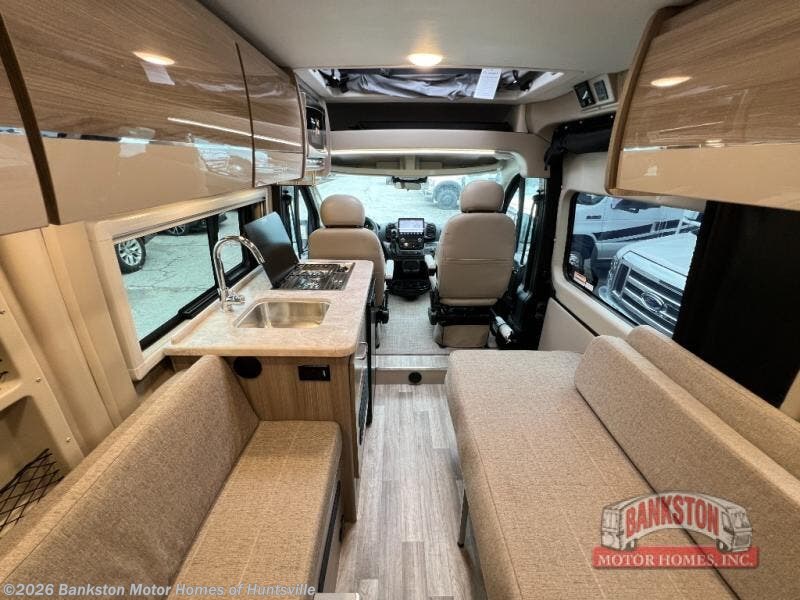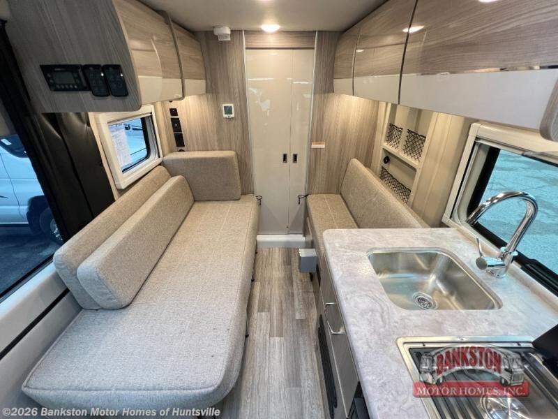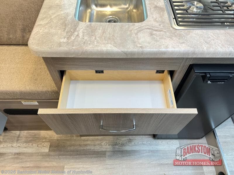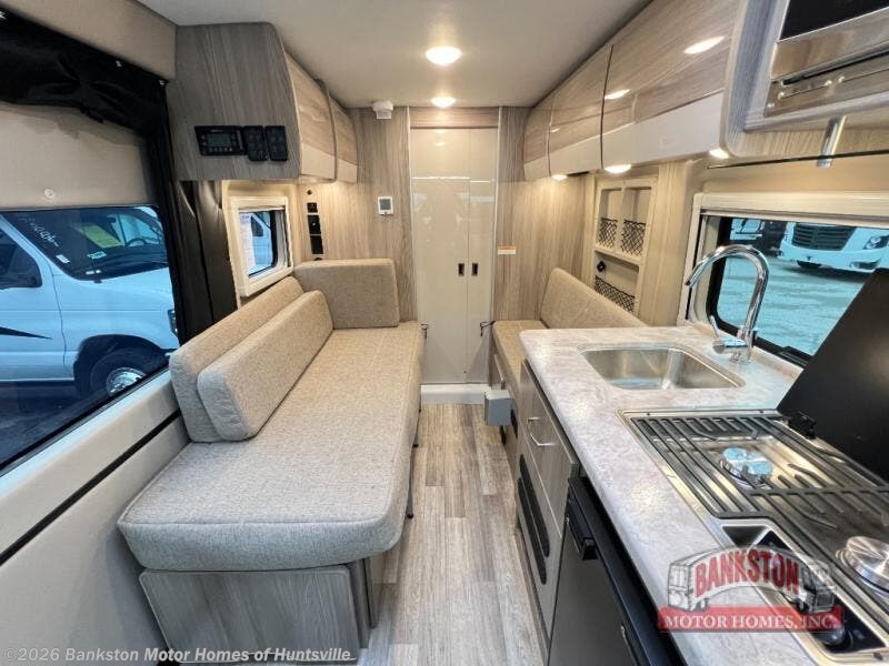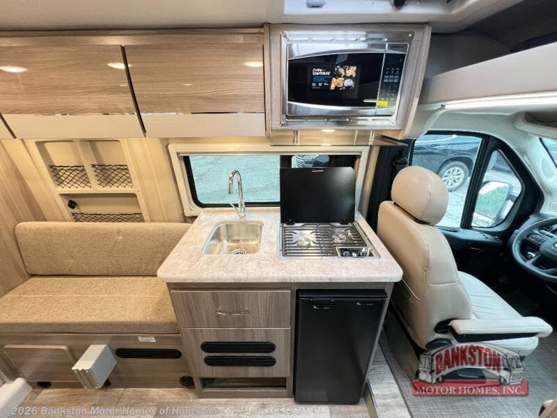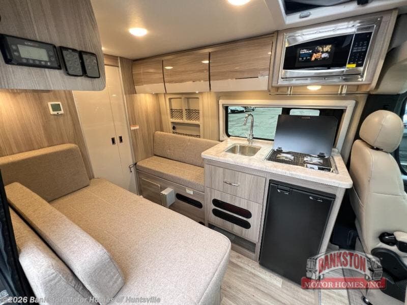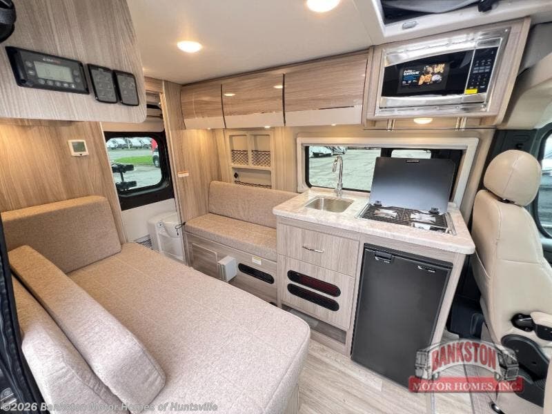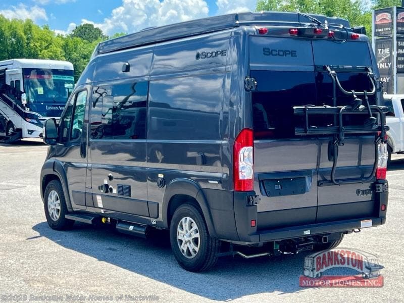 Get comfortable in this Scope Class B motorhome! The seating area includes an expanding sleeper sofa which converts to a roomy 44" x 70" bed. For additional guests, there's the option to add on the Sky Bunk™ with a retractable roof top. You'll have everything you need with the rear wet bath. The driving experience will delight you with swivel captain's chairs, touchscreen dash radio with Apple CarPlay™ & Android Auto™, keyless entry, and a telescoping steering wheel with audio buttons. You'll also appreciate the kitchen, which includes a two burner gas cooktop, microwave oven, and single door 12V electric refrigerator. The stainless steel double bowl sink includes a cover and single handle faucet for easy clean-up!