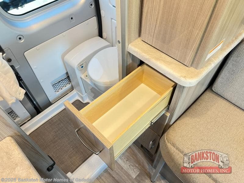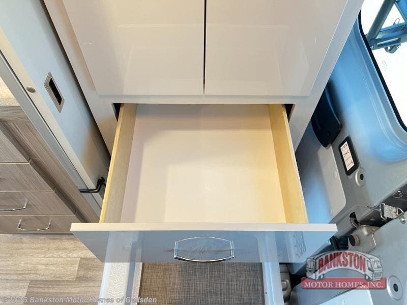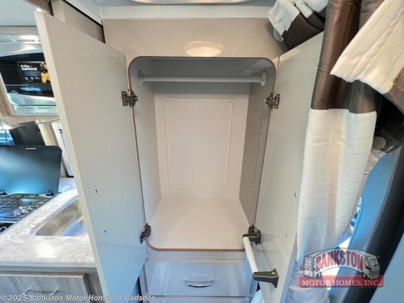 You can go wherever your heart desires with this motorhome! The rear wet bath adds comfort and convenience, plus there is storage to keep your towels close. You can prepare home cooked meals while at the campsite or cook some burgers for a tailgate with the two burner gas cooktop while enjoying a cold beverage kept in the single door stainless electric refrigerator. The swivel captain's chairs are not only comfortable for driving, but also for socializing with guests. The 72" x 47" pull out bed has a removable table and is across from the electronics cabinet which has a HDMI cable and USB charging port.