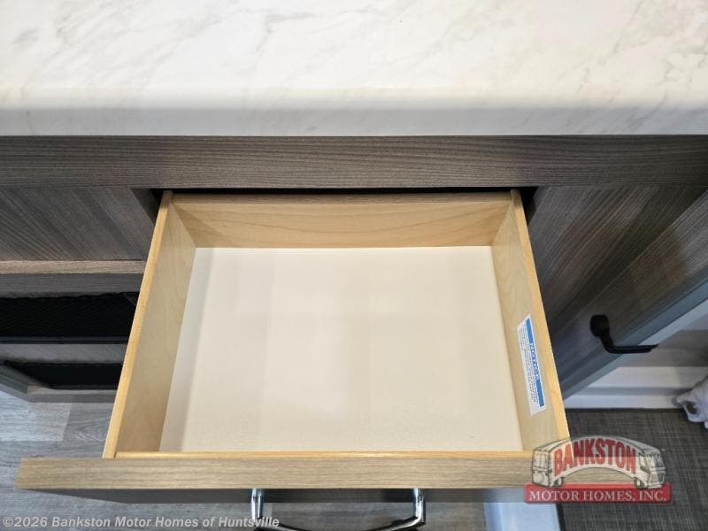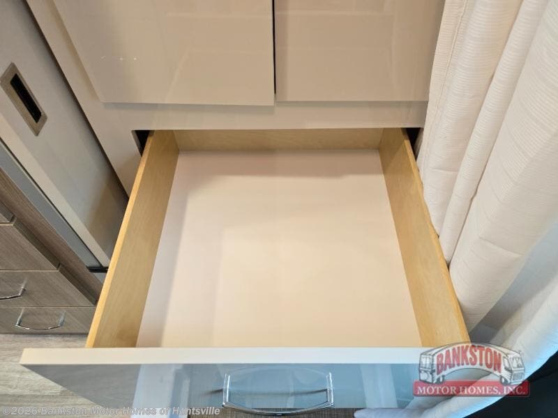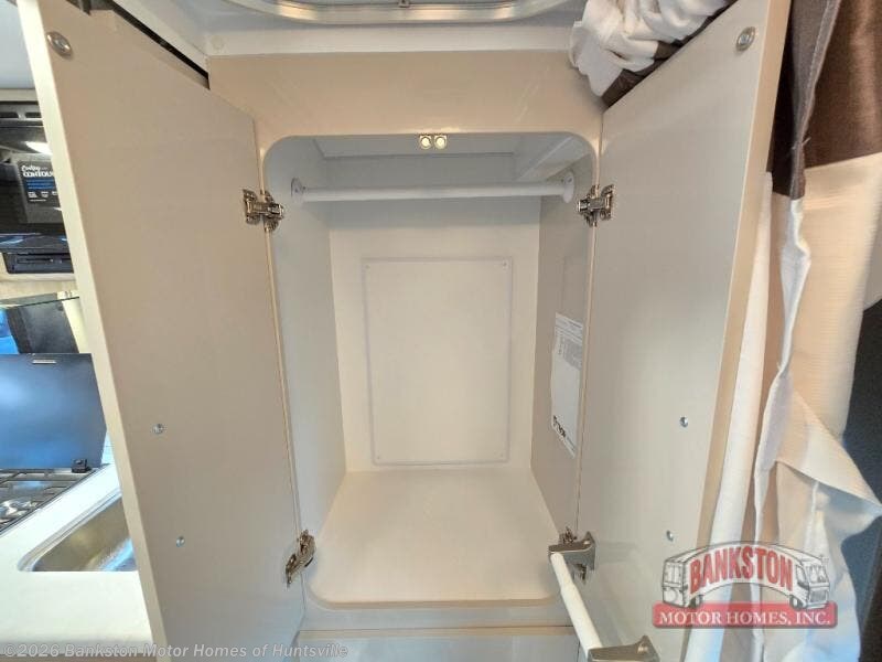 You can go wherever your heart desires with this motorhome! The rear wet bath adds comfort and convenience, plus there is storage to keep your towels close. You can prepare home cooked meals while at the campsite or cook some burgers for a tailgate with the portable cooktop while enjoying a cold beverage kept in the single door 12V electric refrigerator. The swivel captain's chairs are not only comfortable for driving, but also for socializing with guests. The 72" x 47" pull out bed has a removable table and is across from the electronics cabinet which has a HDMI cable and USB charging port.