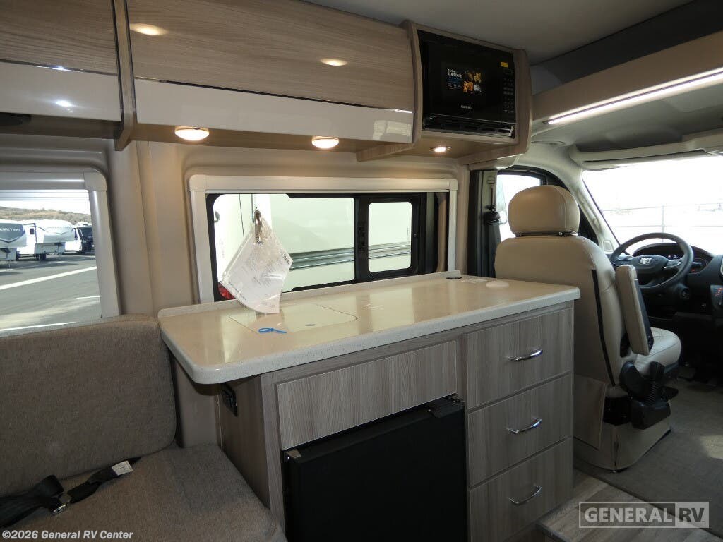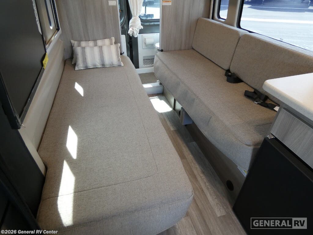 Step into the future of compact luxury with the 2025 Thor Motor Coach Sequence 20L. This sleek and stylish RV is designed for those who crave adventure without sacrificing comfort. At just over 21 feet in length, this Class B motorhome is built on the robust ProMaster 3500 chassis and powered by a mighty Pentastar VVT V6 engine, offering 276 horsepower and 250 lb-ft of torque. Its compact size doesn't compromise on features, boasting a 12 ft. powered retractable awning for those perfect outdoor moments and a convertible expanding sleeper sofa that ensures a restful night under the stars. Inside, the Sequence 20L is a marvel of efficient design. The front kitchen layout features a portable cooktop and a compact electric refrigerator, making meal prep a breeze. The center living area is both cozy and functional, with swivel chairs and a removable table for flexible dining and entertainment options. The rear bath, complete with a curtain shower, offers convenience and privacy. With a fresh water capacity of 27 gallons and ample storage solutions, every journey promises to be as seamless as it is unforgettable. For more information, visit your nearest General RV dealership and discover how the Sequence 20L can be your perfect travel companion.