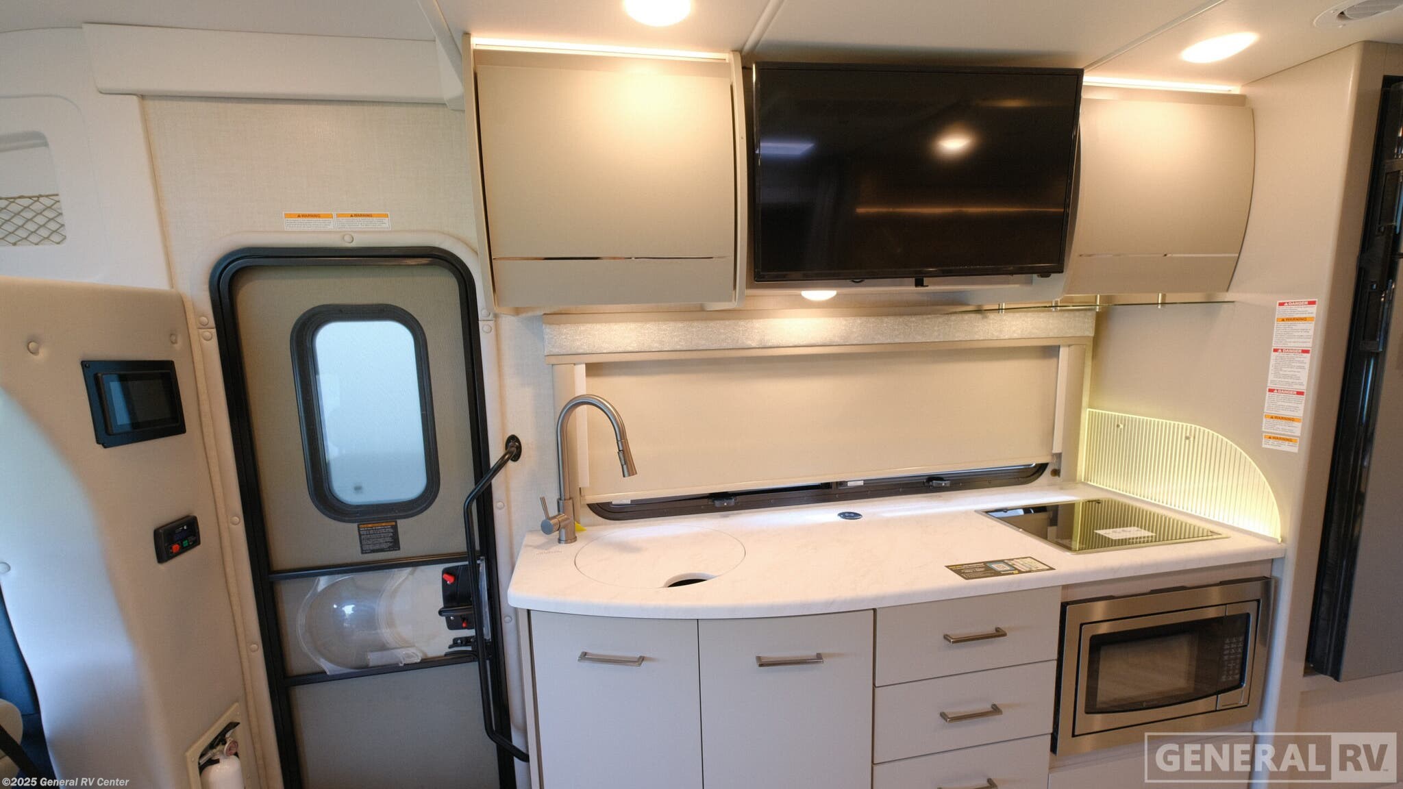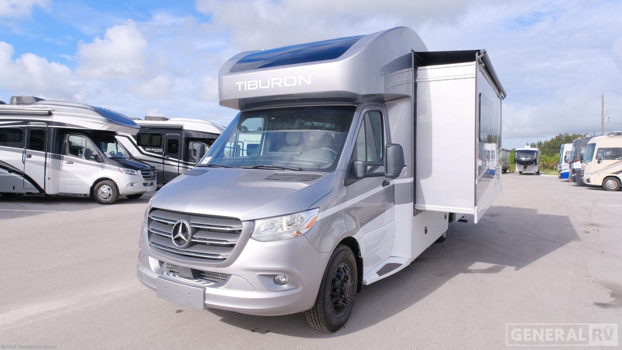 Experience the perfect blend of luxury and functionality with the 2025 Thor Motor Coach Tiburon 24FB. This compact yet spacious RV is designed for the modern adventurer, offering a cozy queen-size Murphy bed that elegantly folds away to reveal a comfortable sofa, maximizing your living space. The front living area, with its inviting Dream Dinette, is perfect for family meals or game nights, while the cab-over bunk provides additional sleeping space, making this RV ideal for families or groups of up to five. The center kitchen is equipped with a mid-size electric refrigerator and a two-burner cooktop, ensuring you can prepare all your favorite meals on the road. Convection cooking adds versatility, making meal prep a breeze. The rear bath offers a privacy curtain and a spacious shower, ensuring comfort and convenience wherever your journey takes you. With a 15 ft. powered retractable awning, you can extend your living space outdoors, perfect for enjoying the scenic views. Powered by a robust Mercedes-Benz I4 engine on a Sprinter 4500 chassis, the Tiburon 24FB combines performance with efficiency. With a towing capacity of 7,500 pounds and a diesel fuel capacity of 24.5 gallons, this RV is ready to take you on endless adventures. Visit your nearest General RV dealership to explore this exceptional motorhome in person and start your next adventure today!
