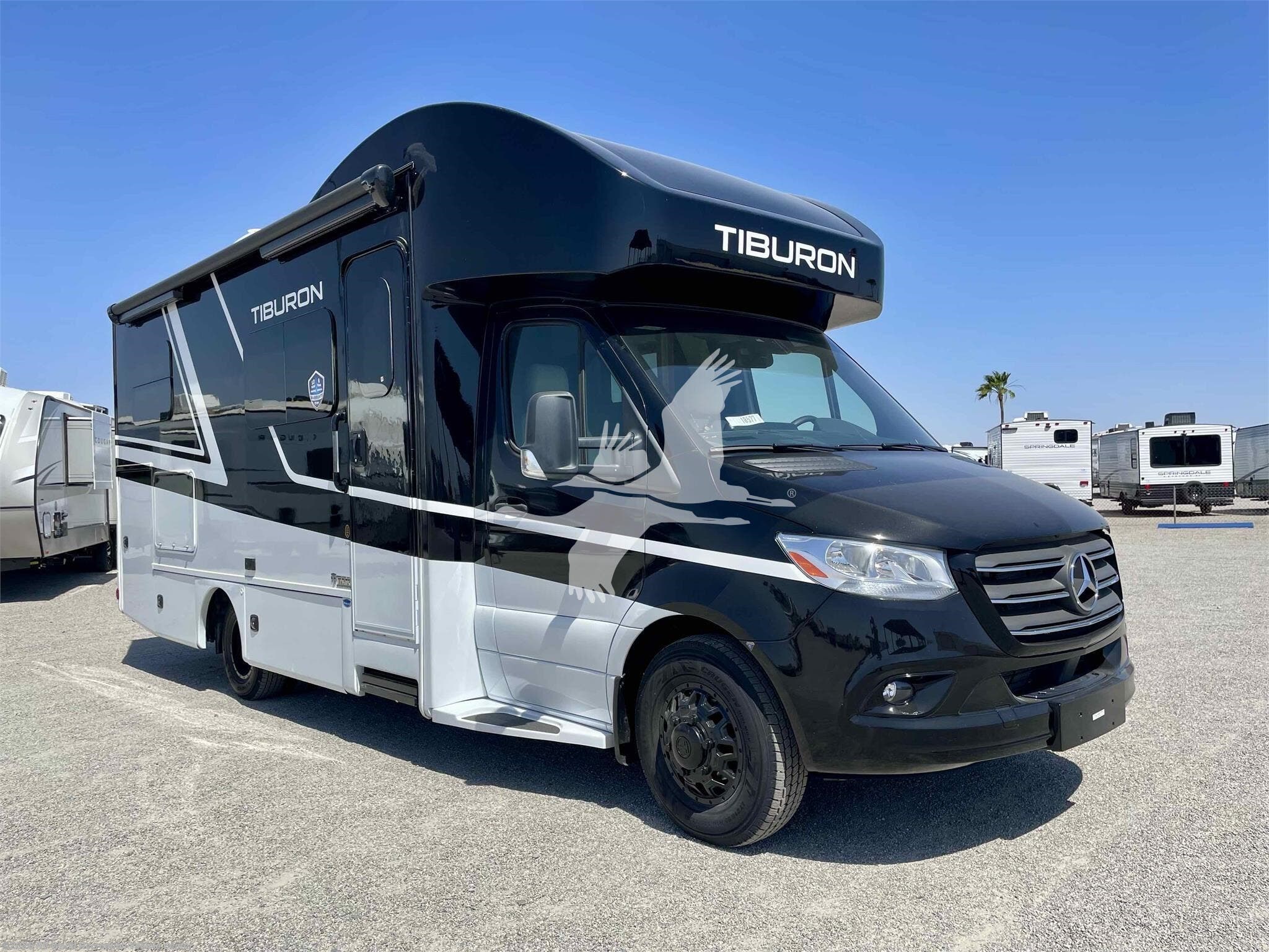 STOCK#: TH18577. ---------- ON SPECIAL & JUST REDUCED!!! ------------ Tiburon combines style and functionality to provide a Class C motorhome that caters to your family’s needs. Its versatile and comfortable living space makes it perfect for short getaways and extended vacations. This Mercedes-Benz® sprinter enhances your adventures and creates lasting memories with your loved ones. The 24XL is 25' 8" in overall length so it's easy to drive and navigate even in city traffic. The 24XL features a 2 slide-outs that create more living area and a walk-around rear bed, and the unique Blackbird Full Body Paint Key Features include Mercedes-Benz Sprinter Chassis, Rotocast Storage Compartments with Side-Hinged Doors, 10" Touchscreen Dash Radio with CD/DVD Player, Bluetooth®, Navigation, & Back-Up Monitor, Heated/Remote Exterior Side Mirrors, Leatherette Furniture, 2-Burner Gas Cooktop & Convection Microwave Oven, Tankless Water Heater, Whole Coach Water Filter System. Other features include Interior Solid Surface Kitchen Countertop with Undermount Sink, Charging Station in Living Area, Lighted Step Well, 200-watt Solar Charging System with Power Controller and 1000-watt Inverter, Auto Leveling Jacks w/Touch Pad Controls, 3.2 Onan Diesel Generator, and more. CARGO CARRYING CAPACITY: 2284 lbs