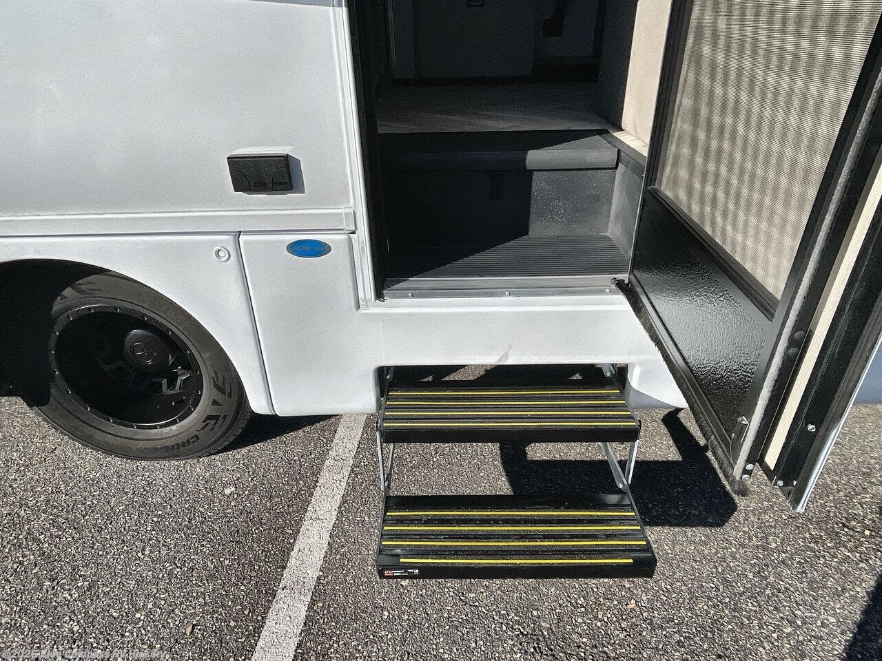 Whatever you want to do and wherever you want to go, take this Tiburon Sprinter Class C diesel motorhome with you! It will offer you a high level of comfort and an exceptional amount of convenience with its many unique additions, like the USB charging port, the window privacy roller shades, telescoping ladder for the bunk above the cab, and the flip-up countertop extension in the kitchen. Sit back and relax on the theater seating and the 68.5" dinette, and enjoy some entertainment from the 39" LED TV. The separated bathroom has the toilet and vanity on one side of the coach and the 24" x 32" shower on the other, and the private bedroom has a flip-up full size bed slide for more interior space, plus a wardrobe for your clothes.