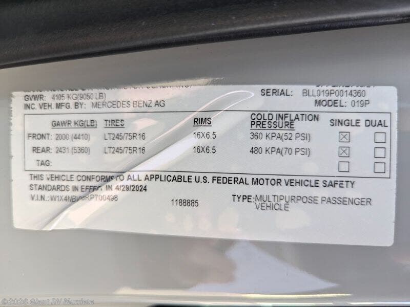 Experience adventure with the 2025 Thor Motor Coach Tranquility 19P, a compact Class B diesel camper van built for off-grid luxury. Available at Giant RV, this Tranquility 19P rides on a Mercedes-Benz Sprinter 2500 AWD chassis with a 2.0L 4-cylinder diesel engine, delivering 208HP and a 5,000 lb. towing capacity. With a fold-out bed and upscale features, it’s perfect for RV camping.