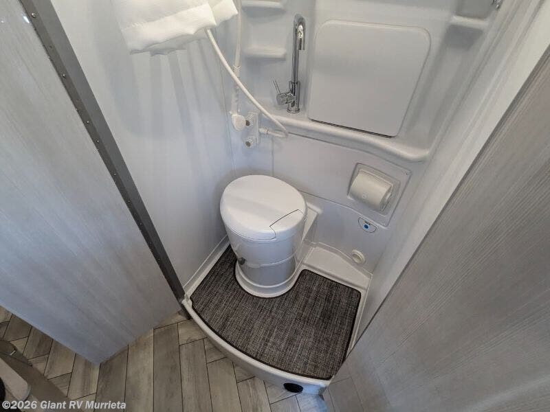 - Wet Bath: Compact bathroom with a cassette toilet, shower with deluxe curtain, and power vent.