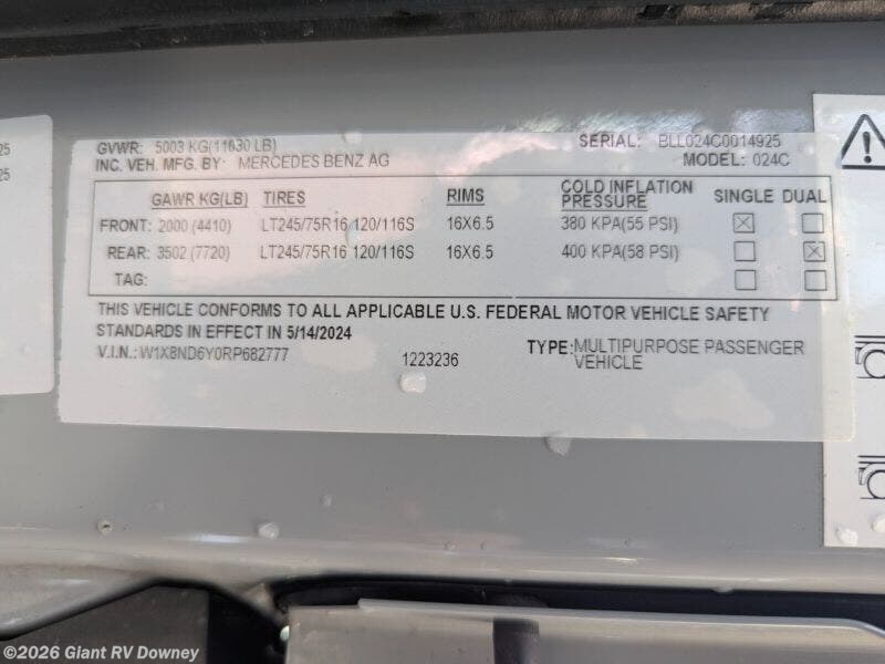 Experience adventure with the 2025 Thor Motor Coach Tranquility 24C, a premium Class B diesel camper van built for off-grid exploration. Available at Giant RV, this Tranquility 24C rides on a Mercedes-Benz Sprinter 3500 AWD chassis with a 2.0L 4-cylinder engine, delivering 211HP and a 5,000 lb. towing capacity. With a fold-out bed and upscale features, it’s perfect for RV camping.