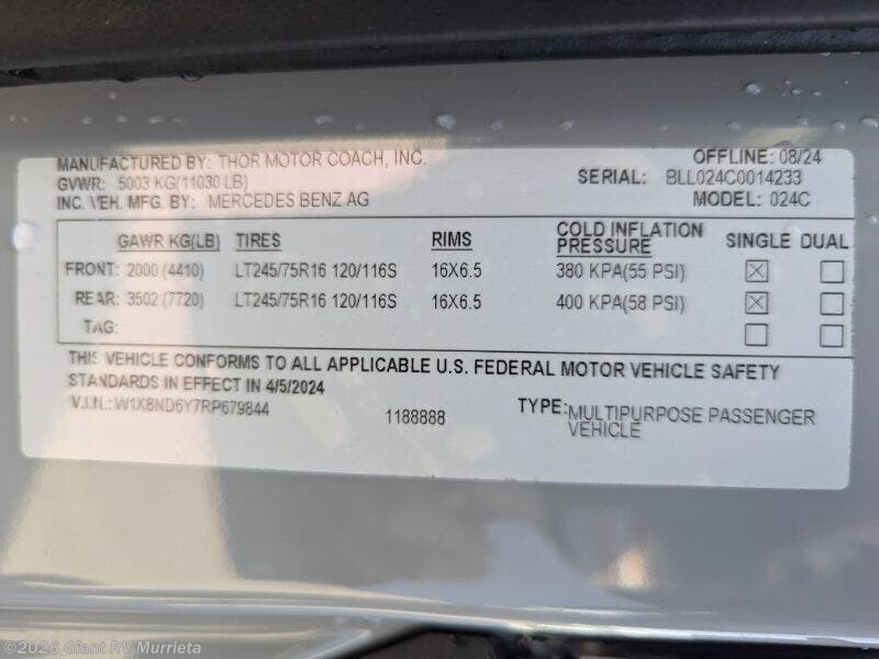 Request More Info on this 2025 Thor Motor Coach Tranquility 24C Offered for sale by Giant RV