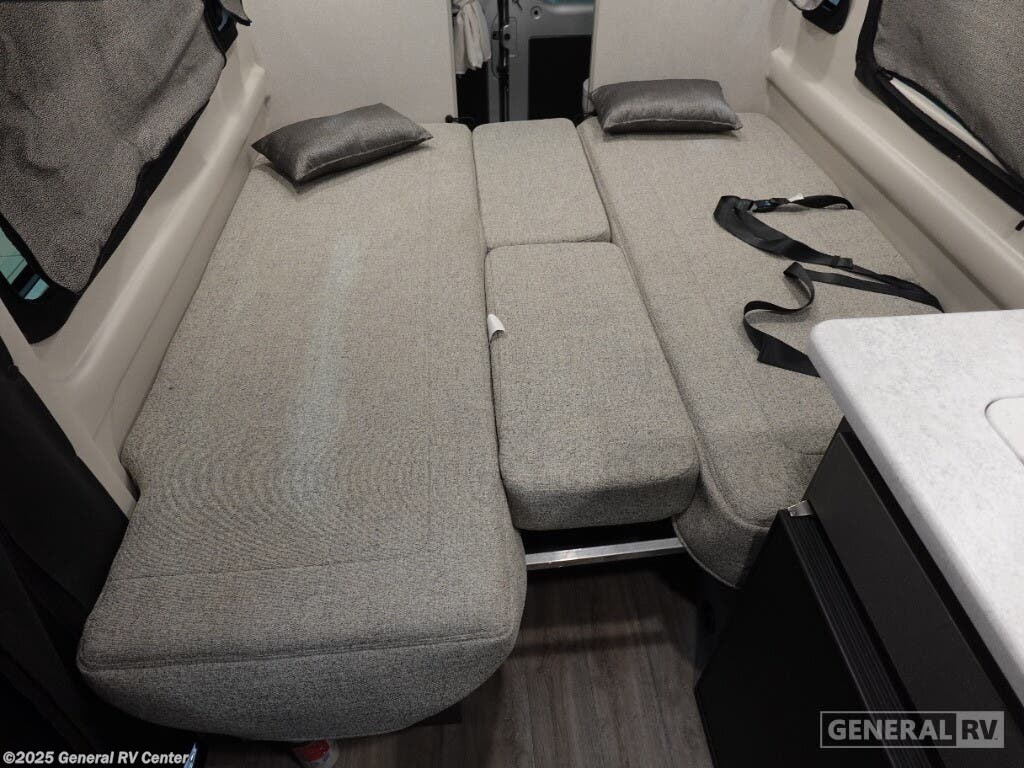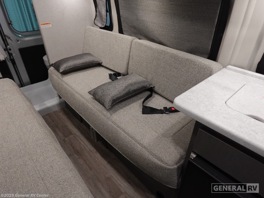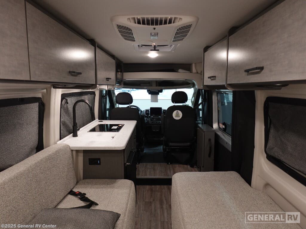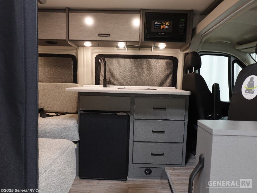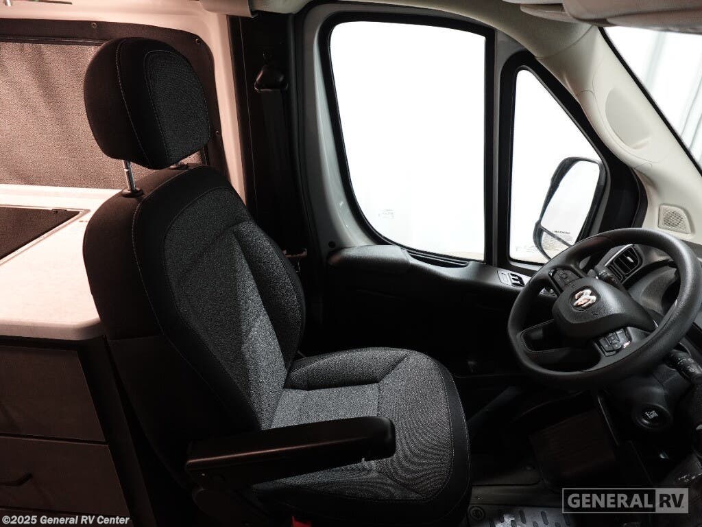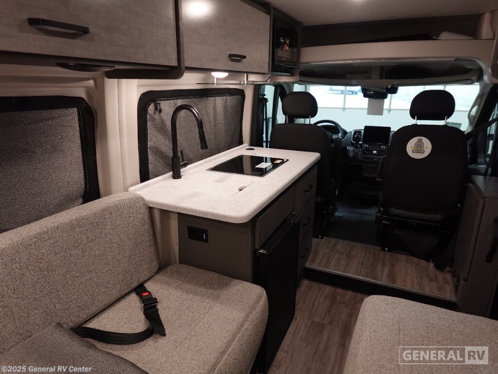 Step into the future of compact luxury with the 2025 Thor Motor Coach Twist 2LB. This sleek and efficient RV is designed for those who crave adventure without sacrificing comfort. At just over 21 feet, it's easy to maneuver yet packed with features. The front kitchen is a chef's delight, featuring a two-burner cooktop and a compact electric refrigerator, perfect for preparing meals on the go. The center living area boasts an expanding sleeper sofa that transforms into a cozy 74" x 80" bed, ensuring restful nights under the stars. The removable table offers flexibility for dining or workspace needs, while the swivel chairs add a touch of versatility and comfort. The rear bath is both functional and stylish, featuring a wet bath setup that maximizes space. With a fresh water capacity of 27 gallons and ample gray and black water storage, your journey can be as long as your spirit desires. Built on a robust ProMaster 3500 chassis with a powerful Pentastar VVT V6 engine, the Twist 2LB offers a smooth and reliable ride. Its impressive towing capacity ensures you can bring along all your favorite toys for the ultimate road trip. Ready to embark on your next adventure? Visit your nearest General RV dealership to explore more about the 2025 Thor Motor Coach Twist 2LB!