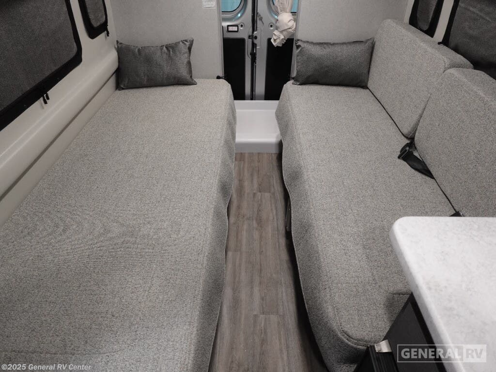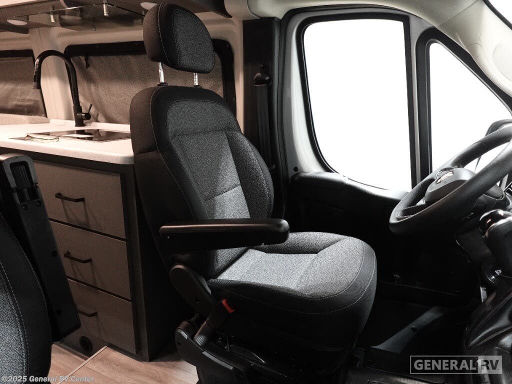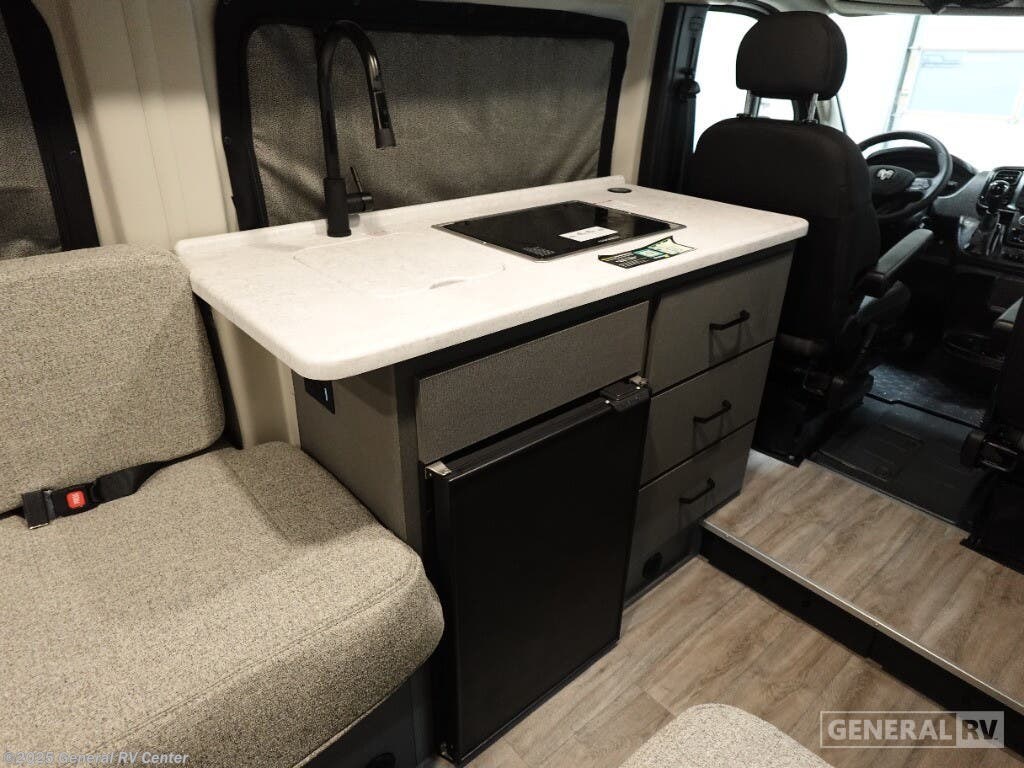 Step into the future of compact luxury with the 2025 Thor Motor Coach Twist 2LB. This sleek and efficient RV is designed for those who crave adventure without sacrificing comfort. At just over 21 feet, it's easy to maneuver yet packed with features. The front kitchen is a chef's delight, featuring a two-burner cooktop and a compact electric refrigerator, perfect for preparing meals on the go. The center living area boasts an expanding sleeper sofa that transforms into a cozy 74" x 80" bed, ensuring restful nights under the stars. The removable table offers flexibility for dining or workspace needs, while the swivel chairs add a touch of versatility and comfort. The rear bath is both functional and stylish, featuring a wet bath setup that maximizes space. With a fresh water capacity of 27 gallons and ample gray and black water storage, your journey can be as long as your spirit desires. Built on a robust ProMaster 3500 chassis with a powerful Pentastar VVT V6 engine, the Twist 2LB offers a smooth and reliable ride. Its impressive towing capacity ensures you can bring along all your favorite toys for the ultimate road trip. Ready to embark on your next adventure? Visit your nearest General RV dealership to explore more about the 2025 Thor Motor Coach Twist 2LB!