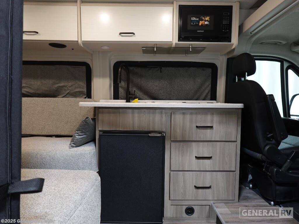 Step into the future of compact luxury with the 2025 Thor Motor Coach Twist 2LB. This sleek and efficient RV is designed for those who crave adventure without sacrificing comfort. At just over 21 feet, it's easy to maneuver yet packed with features. The front kitchen is a chef's delight, featuring a two-burner cooktop and a compact electric refrigerator, perfect for preparing meals on the go. The center living area boasts an expanding sleeper sofa that transforms into a cozy 74" x 80" bed, ensuring restful nights under the stars. The removable table offers flexibility for dining or workspace needs, while the swivel chairs add a touch of versatility and comfort. The rear bath is both functional and stylish, featuring a wet bath setup that maximizes space. With a fresh water capacity of 27 gallons and ample gray and black water storage, your journey can be as long as your spirit desires. Built on a robust ProMaster 3500 chassis with a powerful Pentastar VVT V6 engine, the Twist 2LB offers a smooth and reliable ride. Its impressive towing capacity ensures you can bring along all your favorite toys for the ultimate road trip. Ready to embark on your next adventure? Visit your nearest General RV dealership to explore more about the 2025 Thor Motor Coach Twist 2LB!