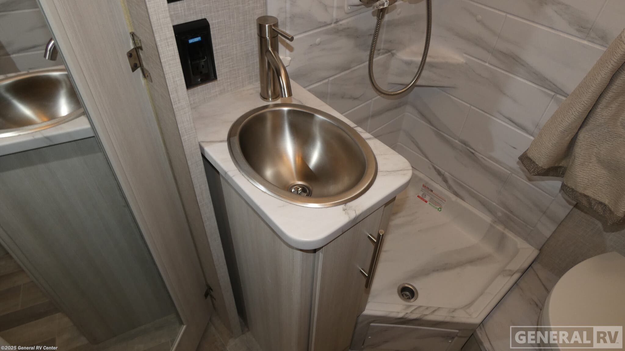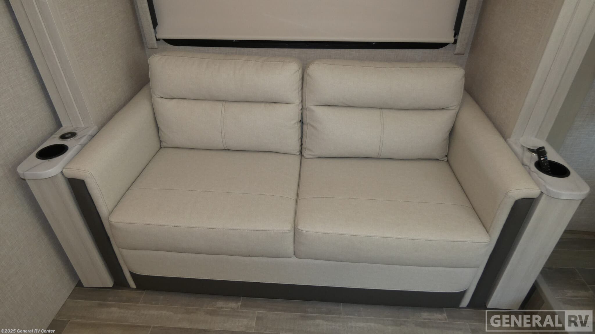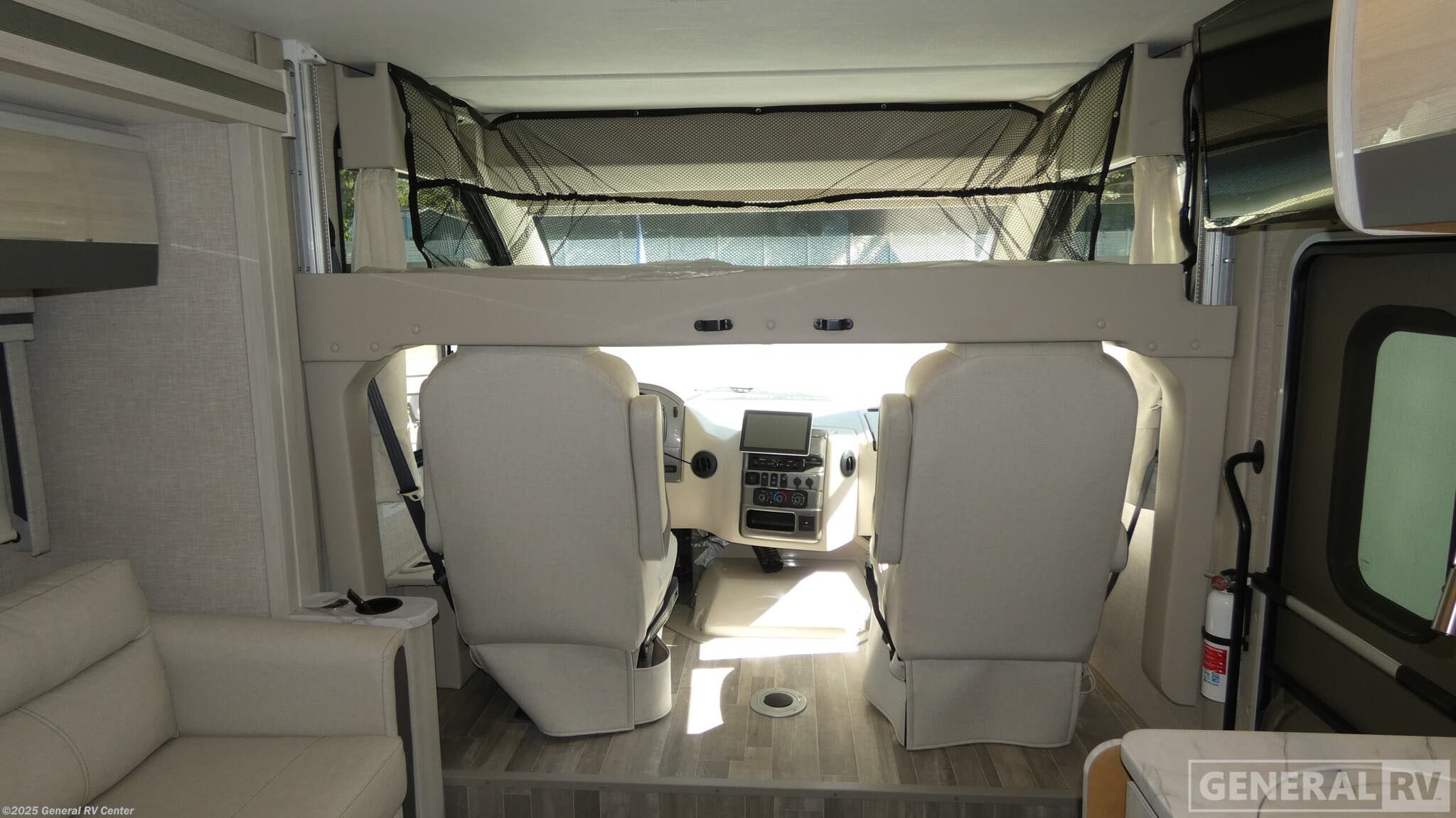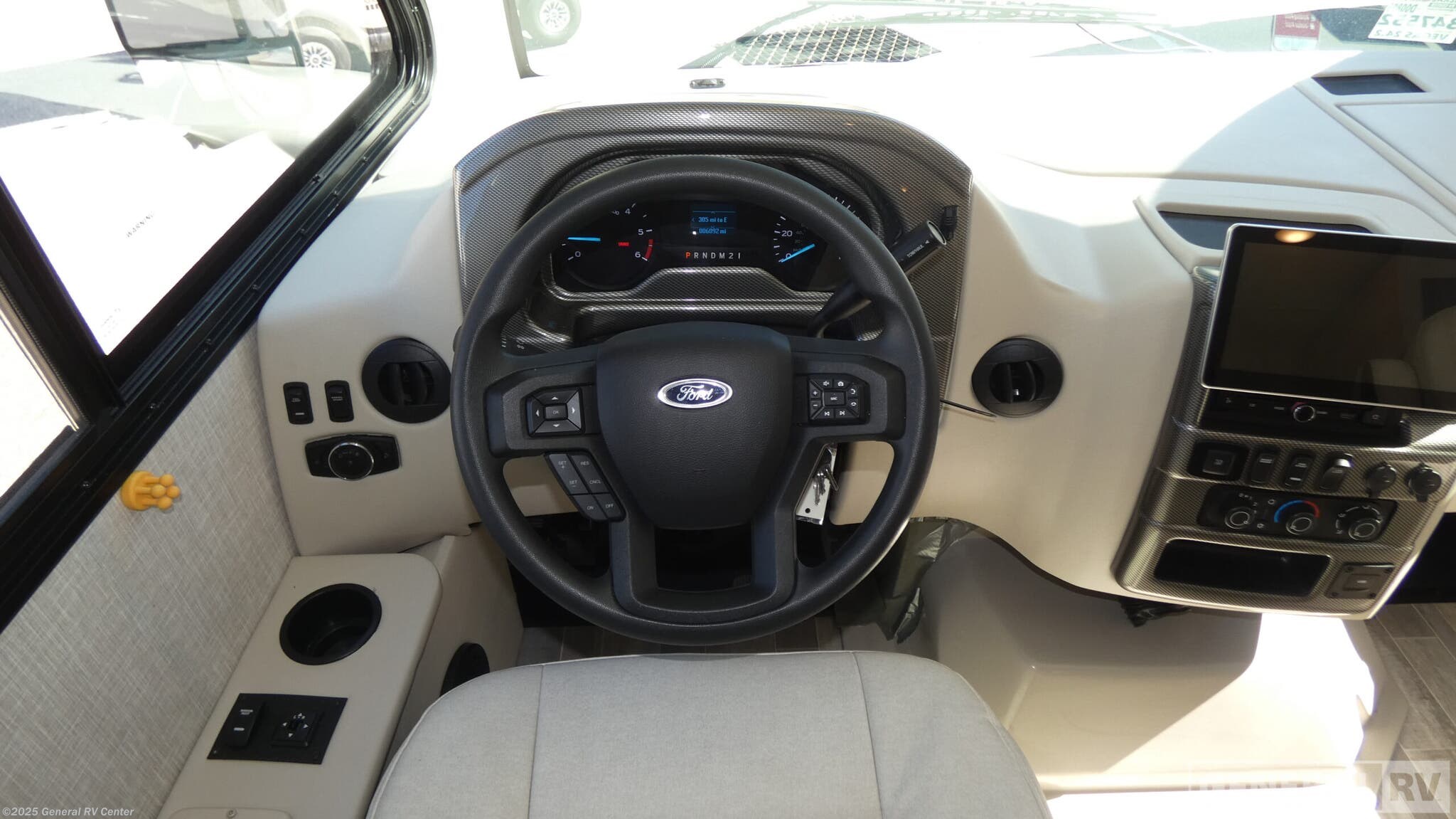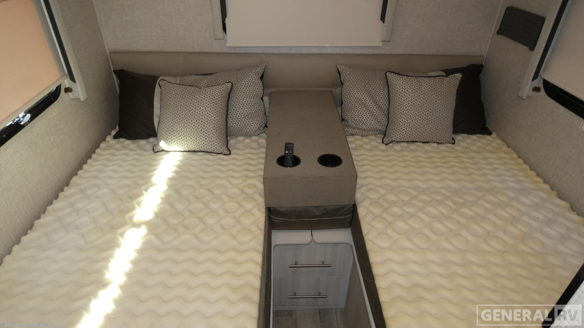 Experience the open road like never before with the 2025 Thor Motor Coach Vegas 24.1. This compact yet spacious RV is expertly designed for those who crave adventure without compromising comfort. With a versatile floorplan, the Vegas 24.1 offers a front living area that invites relaxation, complete with a cozy sofa bed and a removable pedestal table perfect for dining or game nights. The drop down bunk over the cab provides convenient sleeping quarters or additional lounge space. The well-equipped center kitchen, featuring a mid-size electric refrigerator and convection cooking capabilities, ensures you can whip up your favorite meals with ease. As you move towards the rear, you'll find twin beds that can convert into a king, offering flexible sleeping arrangements for up to five people. The center bath, complete with a shower curtain for privacy, ensures you have all the comforts of home. With a 17 ft. powered retractable awning, you can enjoy outdoor living just as much as the interior comforts. Built on a robust Ford E350 chassis and boasting a towing capacity of 8,000 pounds, this RV is ready for any adventure. Visit your nearest General RV Dealership to explore the Thor Vegas 24.1 and start your journey today!