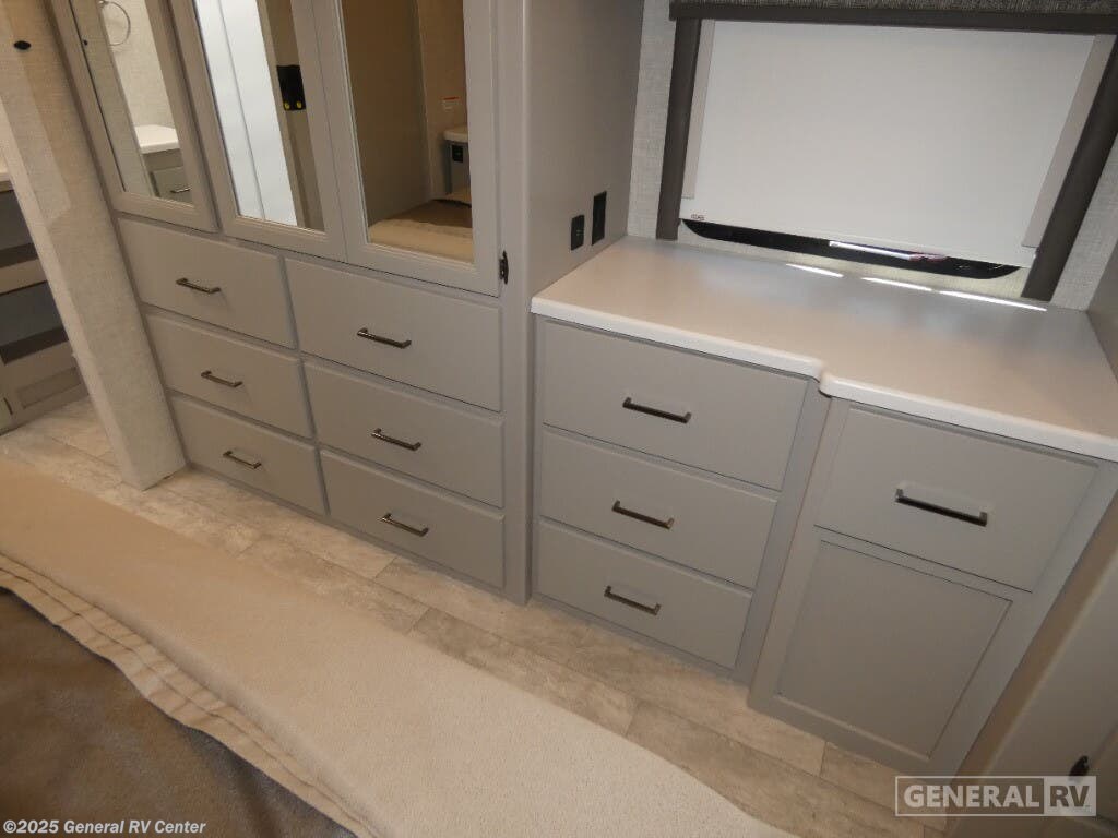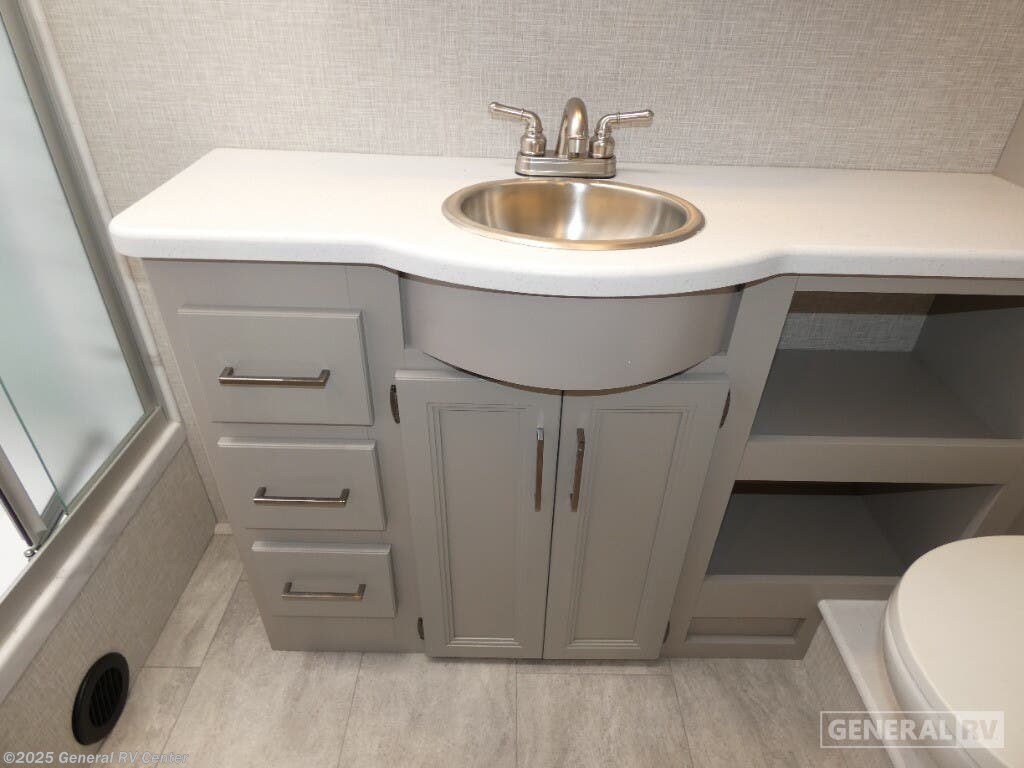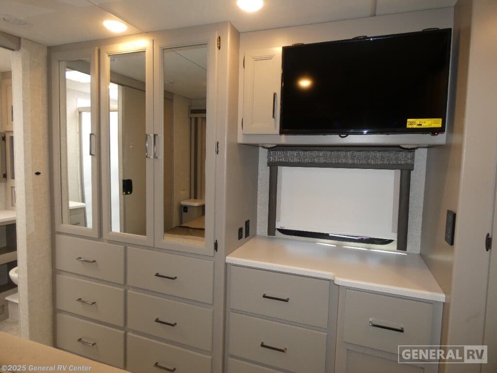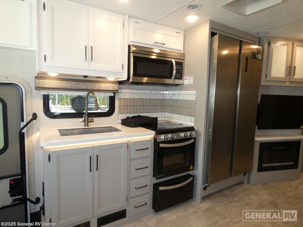 Step into the 2025 Thor Windsport 35G, where luxury meets functionality in a spacious, beautifully designed motorhome. This model is built on a robust Ford F53 chassis, powered by a 335-horsepower engine, ensuring a smooth ride as you explore the open road. With a length of nearly 37 feet, the Windsport 35G offers ample space for up to eight sleepers, making it perfect for family adventures or trips with friends. The interior boasts a thoughtful layout with a center kitchen equipped with a full-size electric refrigerator and a three-burner cooktop, making meal prep a breeze. The living area features a comfortable 68" sofa bed and a dream dinette, providing the perfect spots to relax or entertain. The rear of the RV houses a luxurious king-size bed, offering a restful retreat after a day of exploration. A stackable washer and dryer add convenience, ensuring you have everything you need for extended travels. The bathroom, with its plastic/glass shower, is centrally located for easy access. Outside, enjoy the shade of an 18-foot powered retractable awning, perfect for lounging or outdoor dining. With an impressive towing capacity of 8,000 pounds, this motorhome is ready to bring along your favorite toys for added adventure. Experience the perfect blend of comfort and capability with the 2025 Thor Windsport 35G. For more information, visit your nearest General RV dealership.