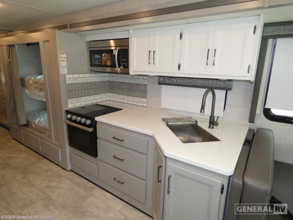 Experience the epitome of comfort and style with the 2025 Thor Motor Coach Windsport 35J. This magnificent motorhome is designed to accommodate up to 10 sleepers, making it perfect for family adventures or group getaways. The spacious interior features a luxurious king-sized bed in the rear bedroom, a full-size convertible bed, and two cozy bunks. The front living area, complete with a 68" sofa bed and a 70" dream dinette, ensures everyone has a place to relax and unwind. The Windsport 35J boasts a well-equipped center kitchen with a full-size electric refrigerator and a three-burner cooktop, making meal preparation a breeze. Enjoy the convenience of the powered retractable 18-foot awning, creating the perfect outdoor space for gatherings. With a Ford F53 chassis, 335 horsepower, and 8,000 lbs towing capacity, this RV offers both power and reliability for your travels. Discover this incredible RV at your nearest General RV Dealership and start planning your next adventure today!
