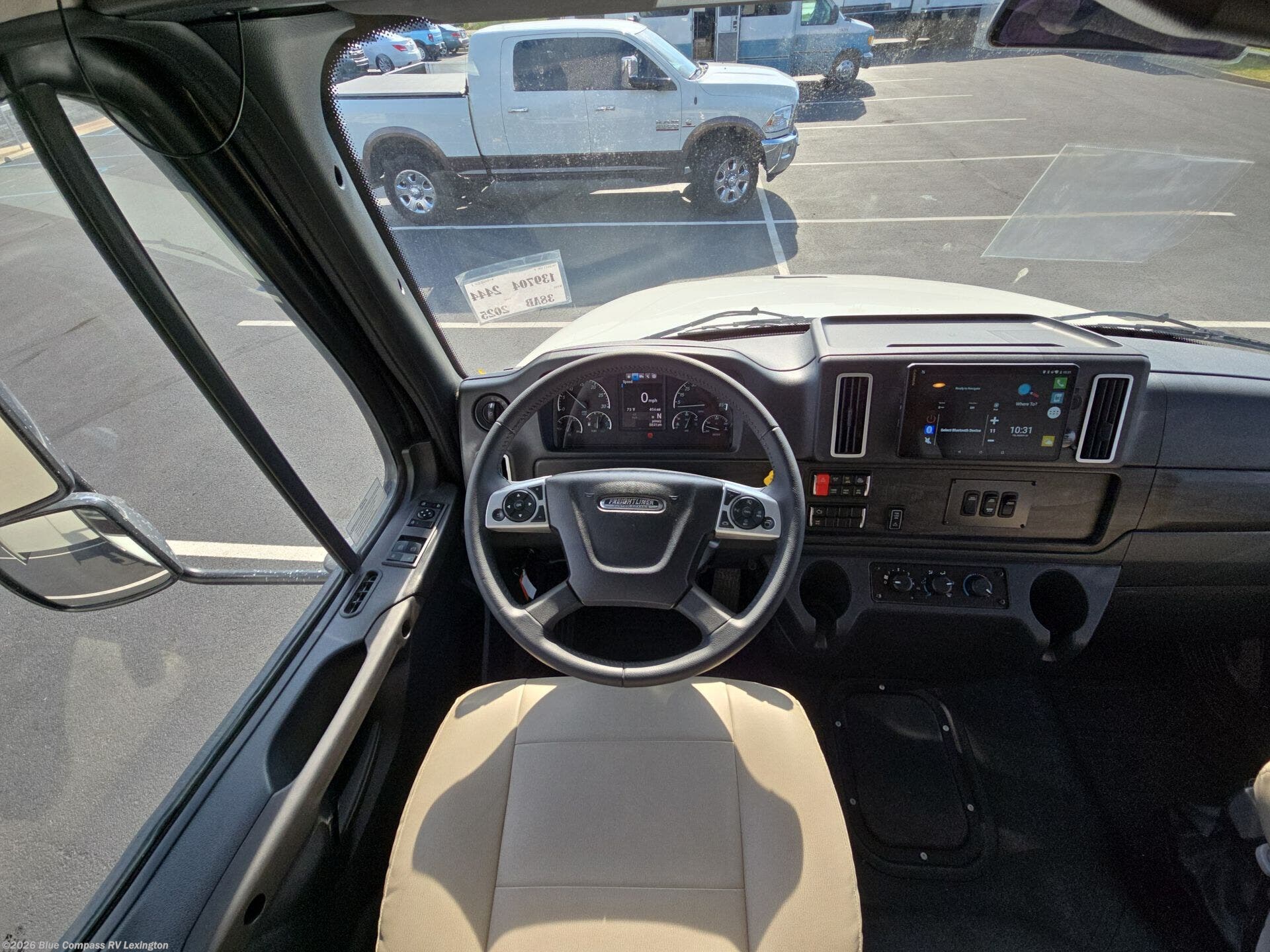 Each Allegro Bay Super C diesel coach by Tiffin Motorhomes sits on a durable Freightliner Custom S2RV chassis with an impressive 360 HP Cummins B6.7 engine for power you can feel. You will appreciate smooth handling thanks to the Trac-Tech full-time NoSPIN differential single rear axle and the automatic traction control. There is a manual release valve for the rear air suspension for added convenience, plus a 12,000 lb. towing capacity that will allow you to bring along the family car or even a horse trailer! This coach includes a Truma AquaGo Comfort instant water heater, AGM extended cycle house batteries, an 8.0 Onan Quiet Diesel generator, plus many more top of the line amenities. You will also love the new Generation 3 paint schemes, an exterior ladder, new matte finish tile flooring option, plus optional Starlink prep in the sewer bay that will give you the option to have internet while you're away from home!