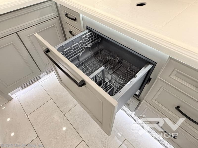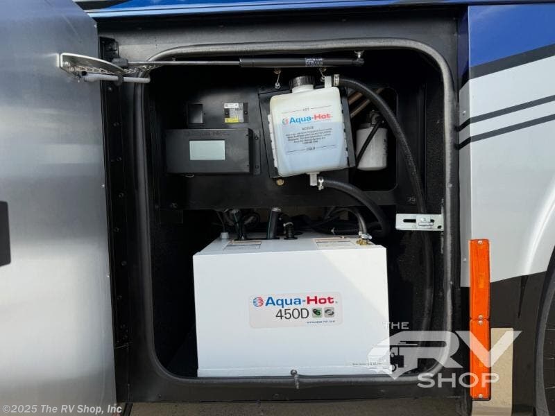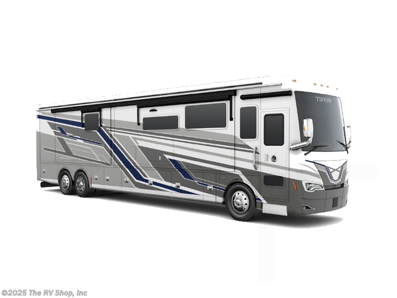 With any Allegro Bus Class A diesel coaches by Tiffin Motorhomes you will experience ultimate luxury, breakthrough technology, and unmatched power thanks to the 450 HP Cummins L9 engine. The captain's job is made easier than ever with the adaptive cruise control, the collision mitigation with forward warning and active braking, and the Valid instrument cluster display with integrated leveling controls. This hydronic heating and electronic appliance-equipped coach features two Girard roof awnings, an Onan 10.0 kW generator, and three 15,000 BTU A/C units to keep you comfortable all year long. New and exciting features include a drawer-style dishwasher on each model, Gold Heat dual zones heated tile floors, Starlink Pro with a subscription, and more!