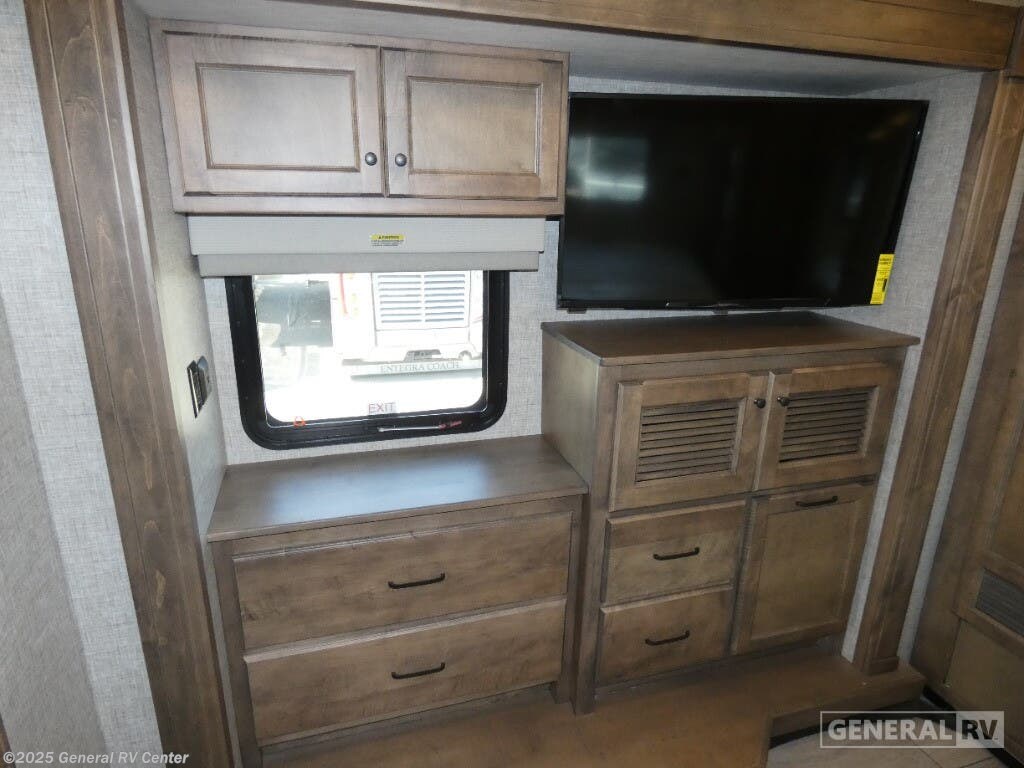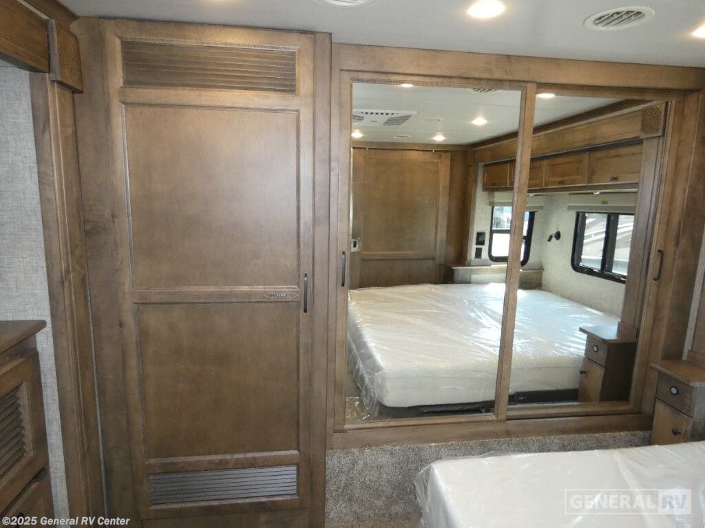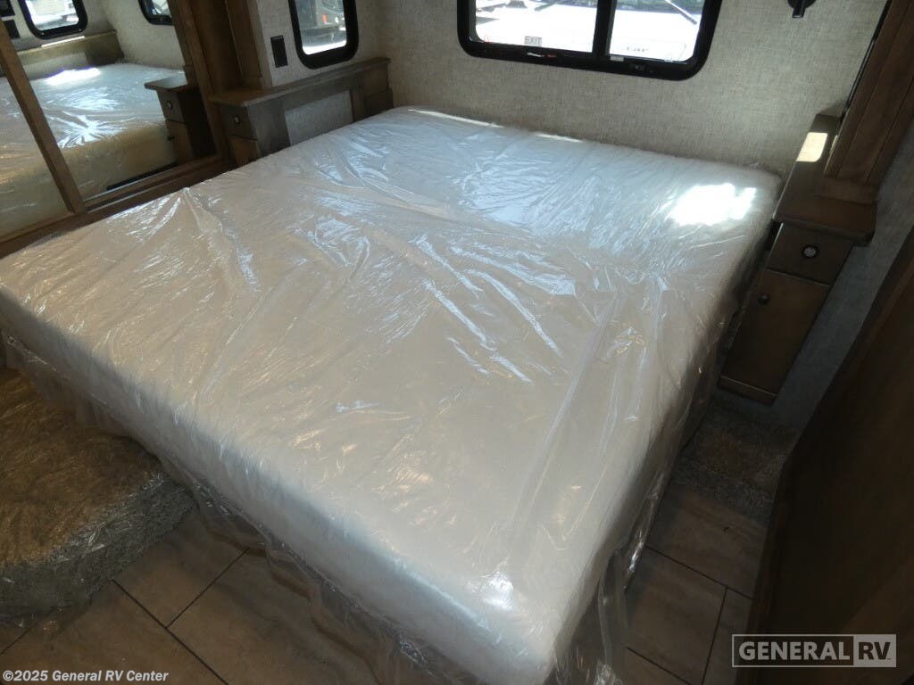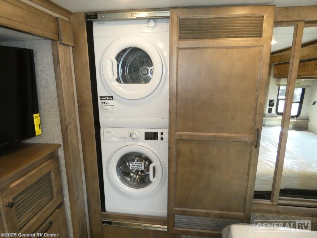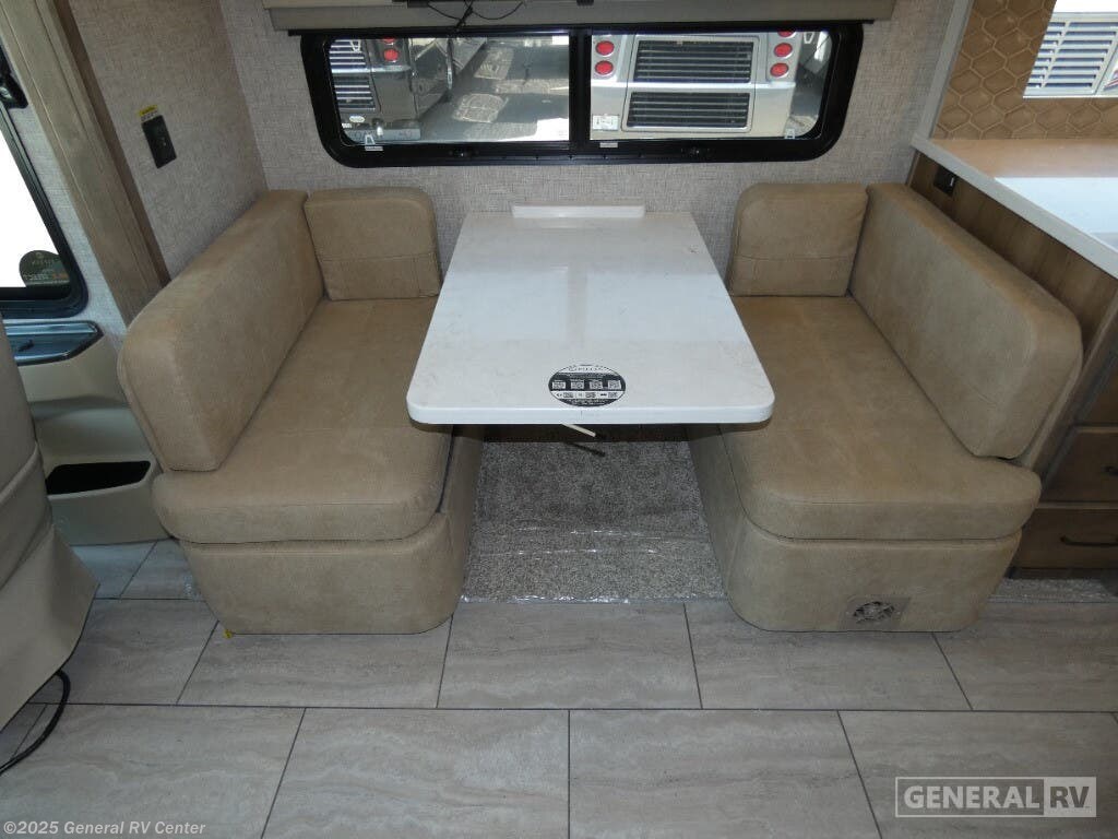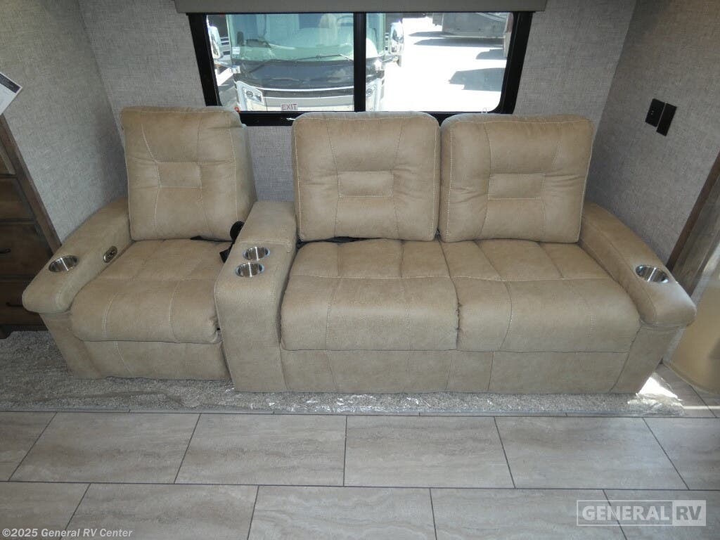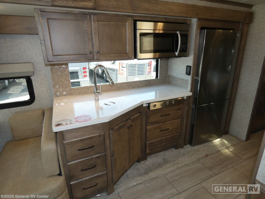 Step into the luxurious world of the 2025 Tiffin Byway 33 FL, where innovation meets comfort in a beautifully designed motorhome. This stunning 35-foot RV offers a spacious front living area, perfect for unwinding on the super sofa or enjoying a meal at the booth dinette, which cleverly converts into a sleeper. The well-appointed center kitchen, featuring a full-size residential refrigerator and three-burner cooktop, ensures you have all the amenities needed to create culinary delights on the road. With the convenience of convection cooking and a stacked washer/dryer, this motorhome truly feels like a home away from home. The rear bedroom is a sanctuary of relaxation, boasting a king-size bed and ample storage with wardrobes and nightstands. The thoughtfully designed layout includes a center bath with a plastic/glass shower, offering privacy and comfort. With the ability to sleep up to seven, thanks to an optional drop-down front bunk and convertible beds, this RV is perfect for families or groups seeking adventure. The powered retractable awning invites you to enjoy the great outdoors, while the robust Cummins I6 Diesel Pusher engine ensures a smooth and powerful journey. Visit your nearest General RV dealership to experience the blend of luxury and practicality that the Tiffin Byway 33 FL offers.