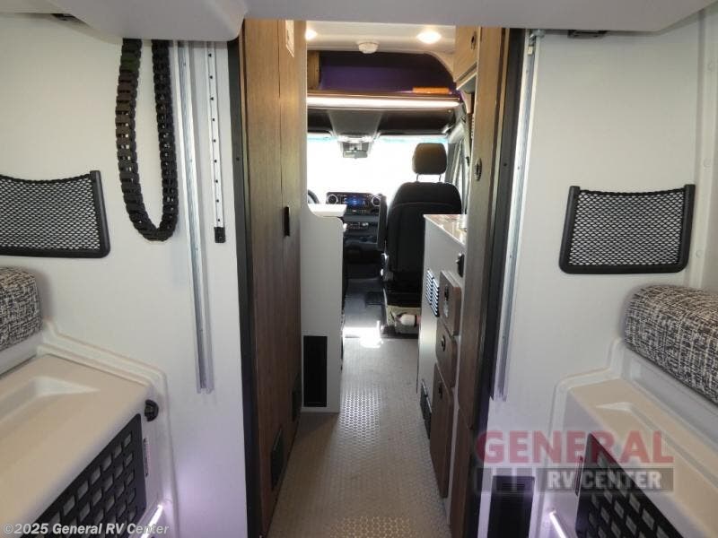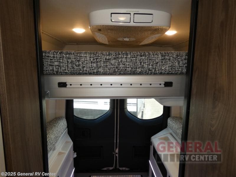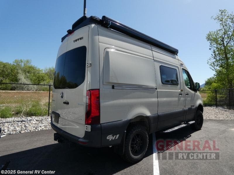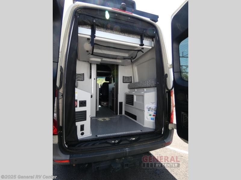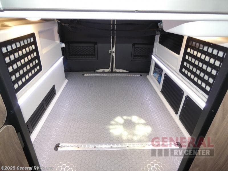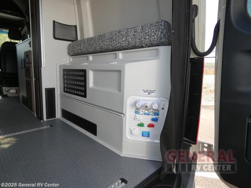 Pick a place, any place, and start packing. This off-road capable diesel van features a 49" x 79" gear garage beneath the power lift bed where you can store camp chairs, paddle boards for the lake, outdoor games and plenty of hiking gear. The on-board wet bath will keep you fresh and clean, and you can easily whip up meals and snacks in the kitchen with a single-burner induction cooktop and refrigerator beneath the counter for your perishables. There is also a sink for cleaning up and a removable counter extension. An adventure bar work/storage solutionbehind the driver's seat can accommodate you for meals or a game of cards. Both front driver and passenger seats swivel to the back so you'll have plenty of seating even with company. At night, the power lift bed will allow you to get a great night's rest so you can enjoy it all again the next day!