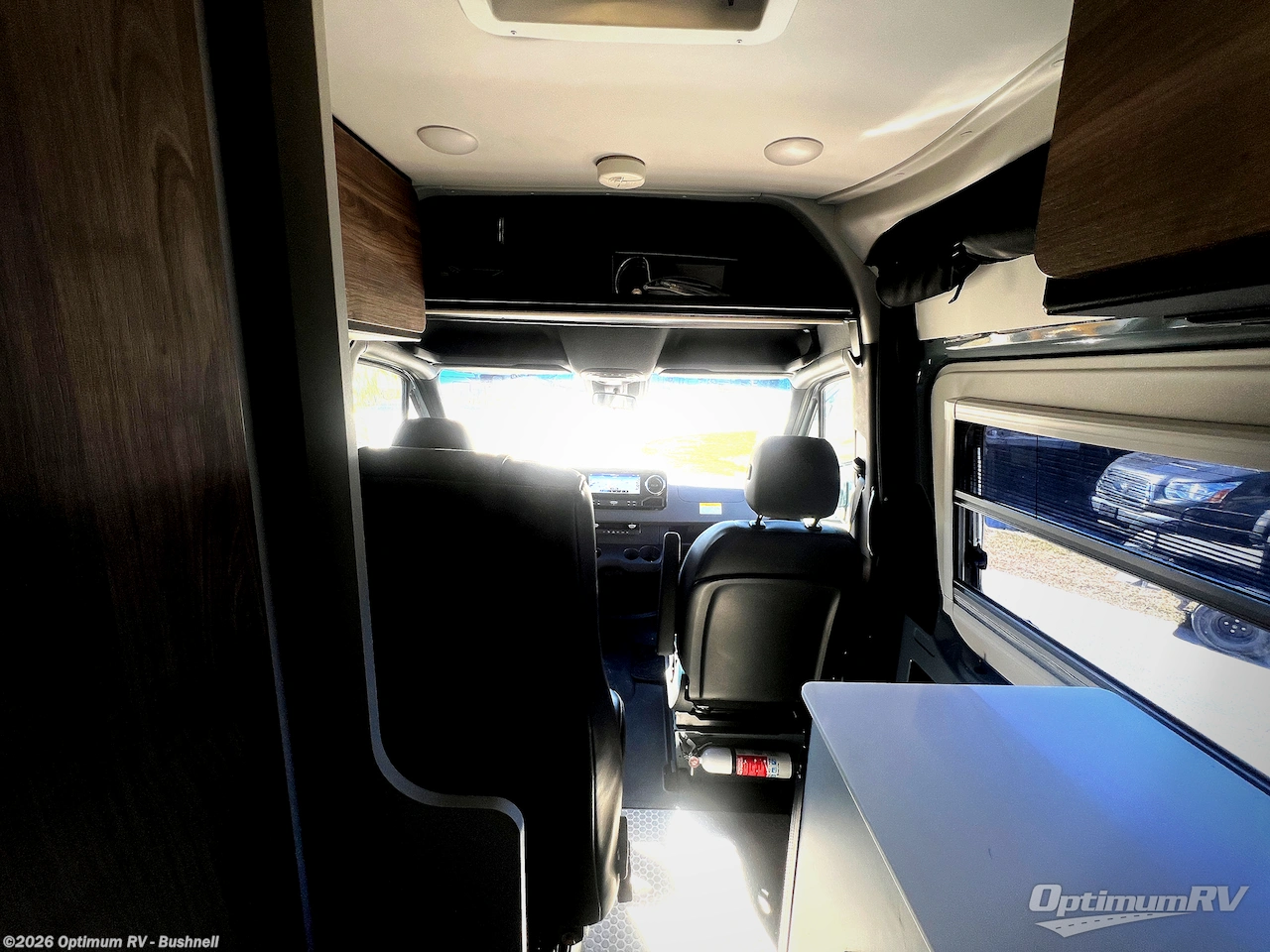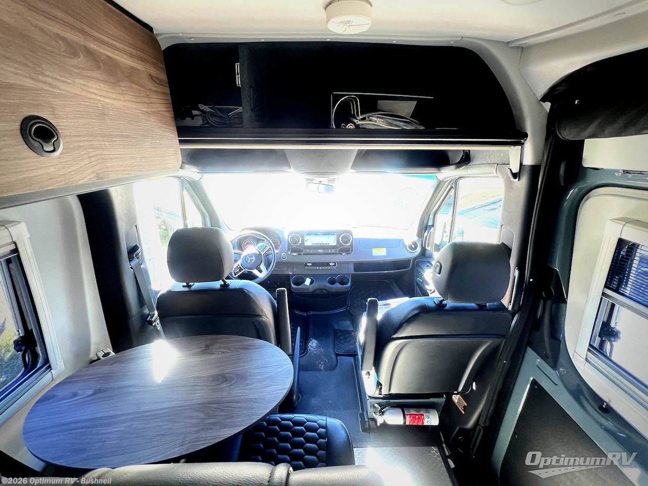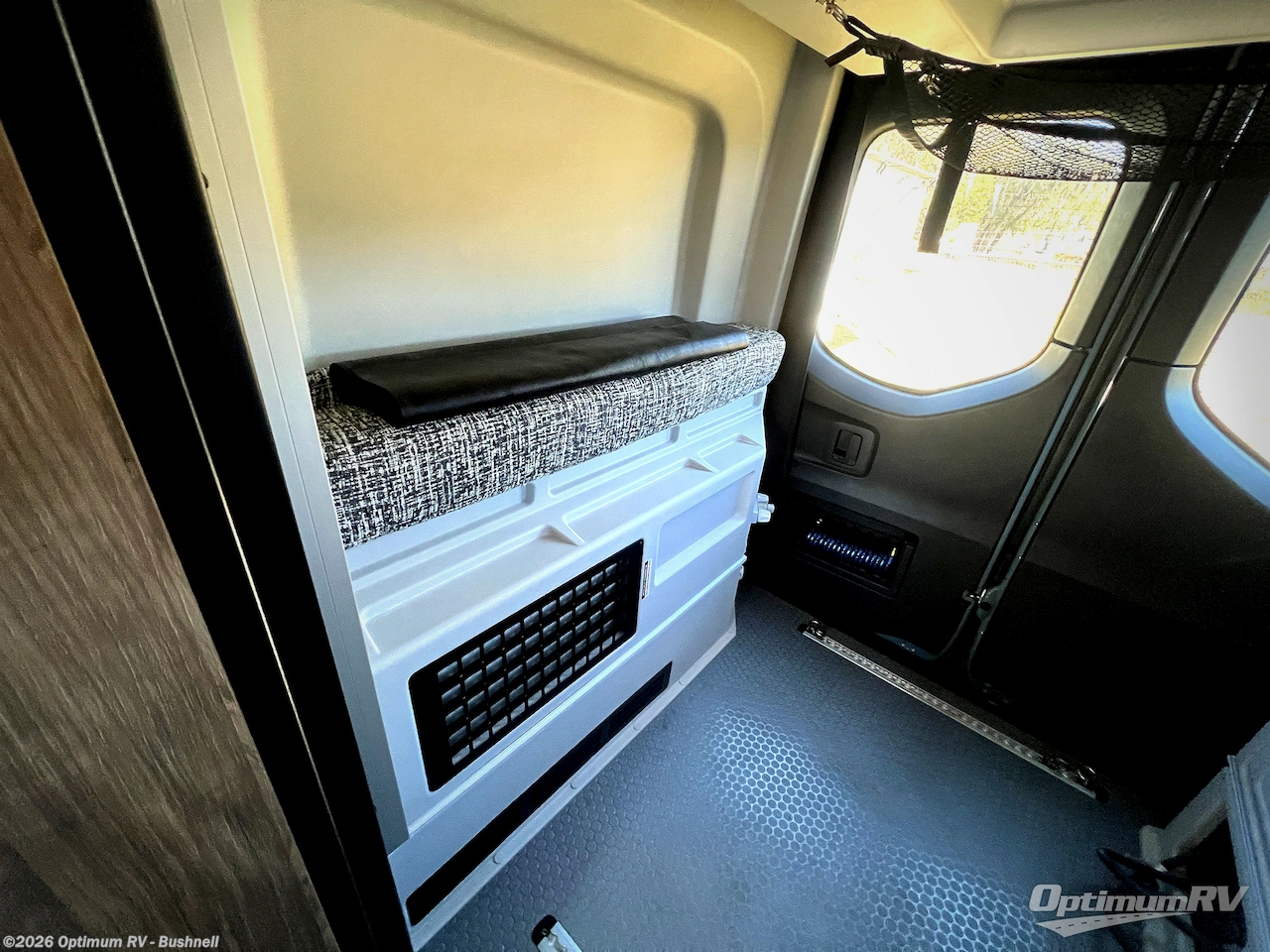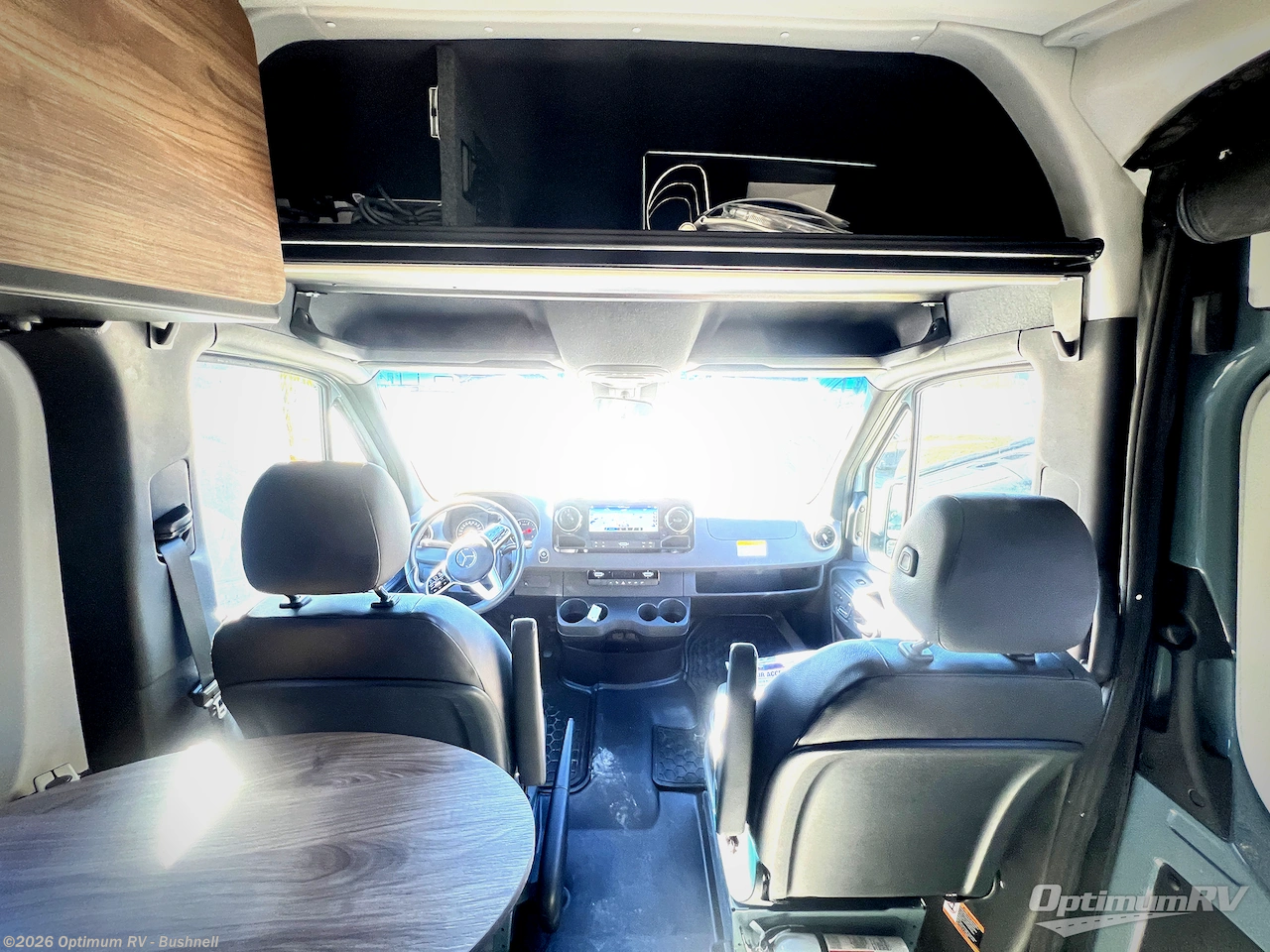 Pick a place, any place, and start packing. This off-road capable diesel van features a 49" x 79" gear garage beneath the power lift bed where you can store camp chairs, paddle boards for the lake, outdoor games and plenty of hiking gear. The on-board wet bath will keep you fresh and clean, and you can easily whip up meals and snacks in the kitchen with a single-burner induction cooktop and refrigerator beneath the counter for your perishables. There is also a sink for cleaning up and a removable counter extension. An optional jump seat and removable wall mounted swivel table behind the driver's seat can accommodate you for meals or a game of cards, or you can choose the optional adventure bar work/storage solution in place of the jump seat. Both front driver and passenger seats swivel to the back so you'll have plenty of seating even with company. At night, the power lift bed will allow you to get a great night's rest so you can enjoy it all again the next day!