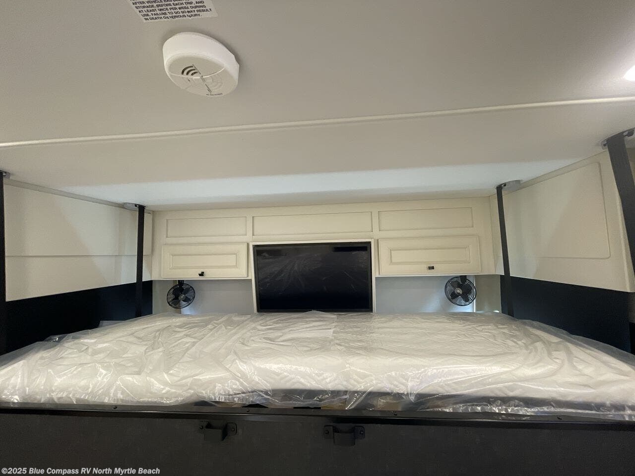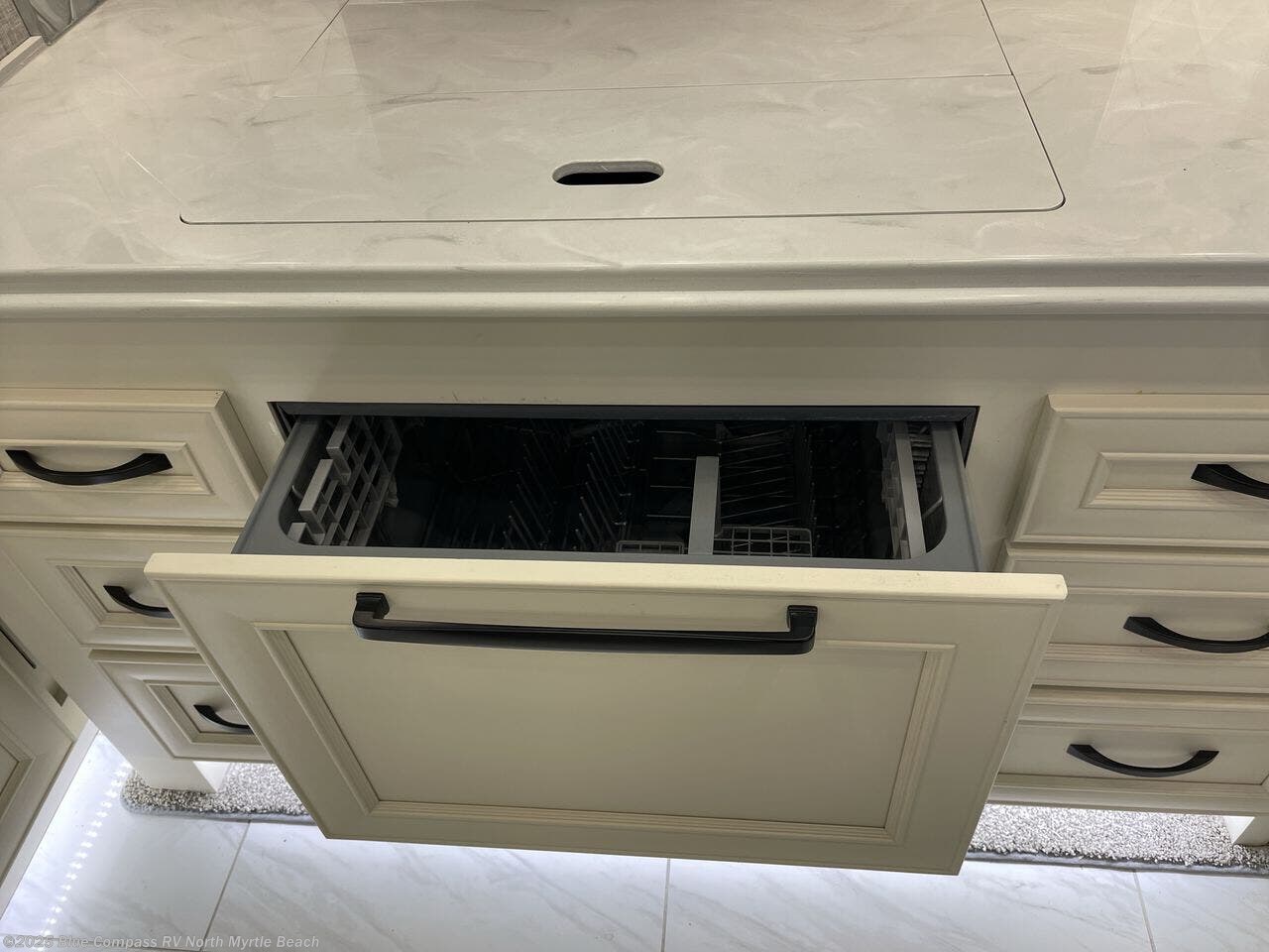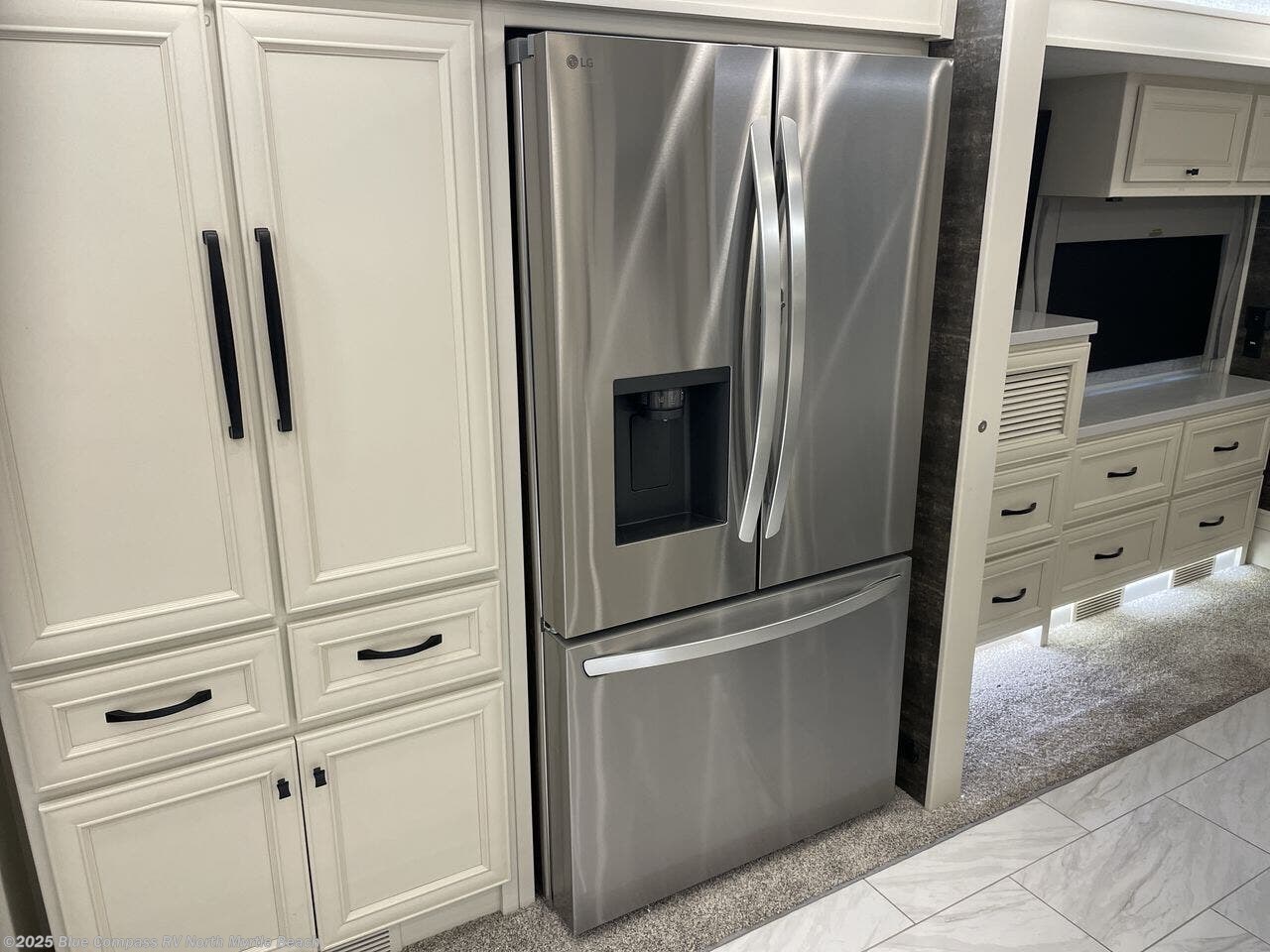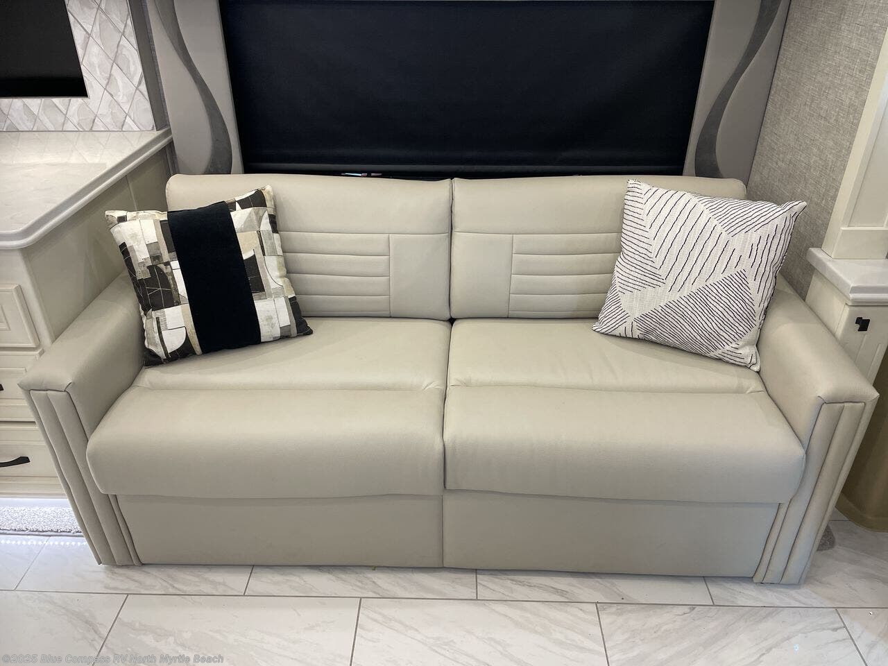 Travel the country with this comfortable motorhome! The full rear bathroom will have you feeling right at home with the dual sink vanity that has a tri-view mirror, a shower with a seat, and a closet with has an area prepped to add an optional stacked washer and dryer. Get a good night's rest on the 72" x 80" king bed slide with nightstands on either side across from stacked drawers and a mounted bedroom TV. You will have everything you need to prepare delicious home cooked meals including a smart convection microwave with an air fryer, storage drawers for ingredients, and you can even add an optional drawer-type dishwasher to make clean up easier. The air coil sofa bed offers another comfortable sleeping space for a guest or two, plus you can add an optional drop-down front bunk for even more sleeping space. This model also includes a dinette with chairs and an optional fireplace if you want to make your space even more cozy!