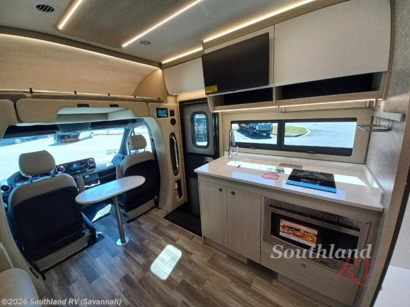 With any Wayfarer Class C diesel coach by Tiffin Motorhomes you will enjoy luxury features both inside and out. There are one-piece molded gel-coat fiberglass front and rear caps plus full-body paint and two layers of clear coat for added protection. The Mercedes-Benz 3500XD dual wheel cutaway chassis provides a strong foundation, and the 2.0L V4 turbo diesel high output 208 HP diesel engine with 332 lb-ft torque will keep you going adventure after adventure! You will love the drive just as much as the destination with adjustable captain's seats that are also heated, intelligent navigation, and a Mercedes-Benz MBUX multimedia system with a 10.25" touchscreen. Wherever you decide to roam, you will be met with interior comforts that include high pressure laminate cabinets, solar and privacy shades, solid surface galley countertops and task lighting, and a wardrobe in the bedroom to keep your space tidy.