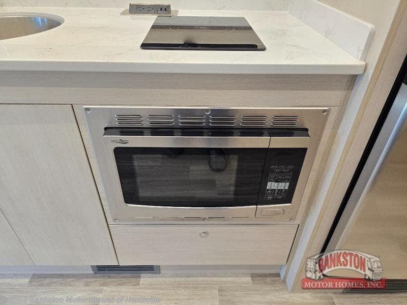 Travel with your favorite person, family, or some friends to see nature along the highways, up close and where ever the road takes you! You will find sleeping space for five with the bunk over the cab, the booth dinette-sleeper, and the versatile queen-size Murphy bed and sofa combo! The rear full bathroom gives you privacy, and the galley kitchen lets you make meals on the two burner cooktop and convection microwave oven. You might like to add a few options to customize your coach such as optional theater seating, or a tri-fold sofa in place of the dinette, a central vacuum system, an overhead entertainment center in place of the bunk, and/or an exterior TV to enjoy under the awning.