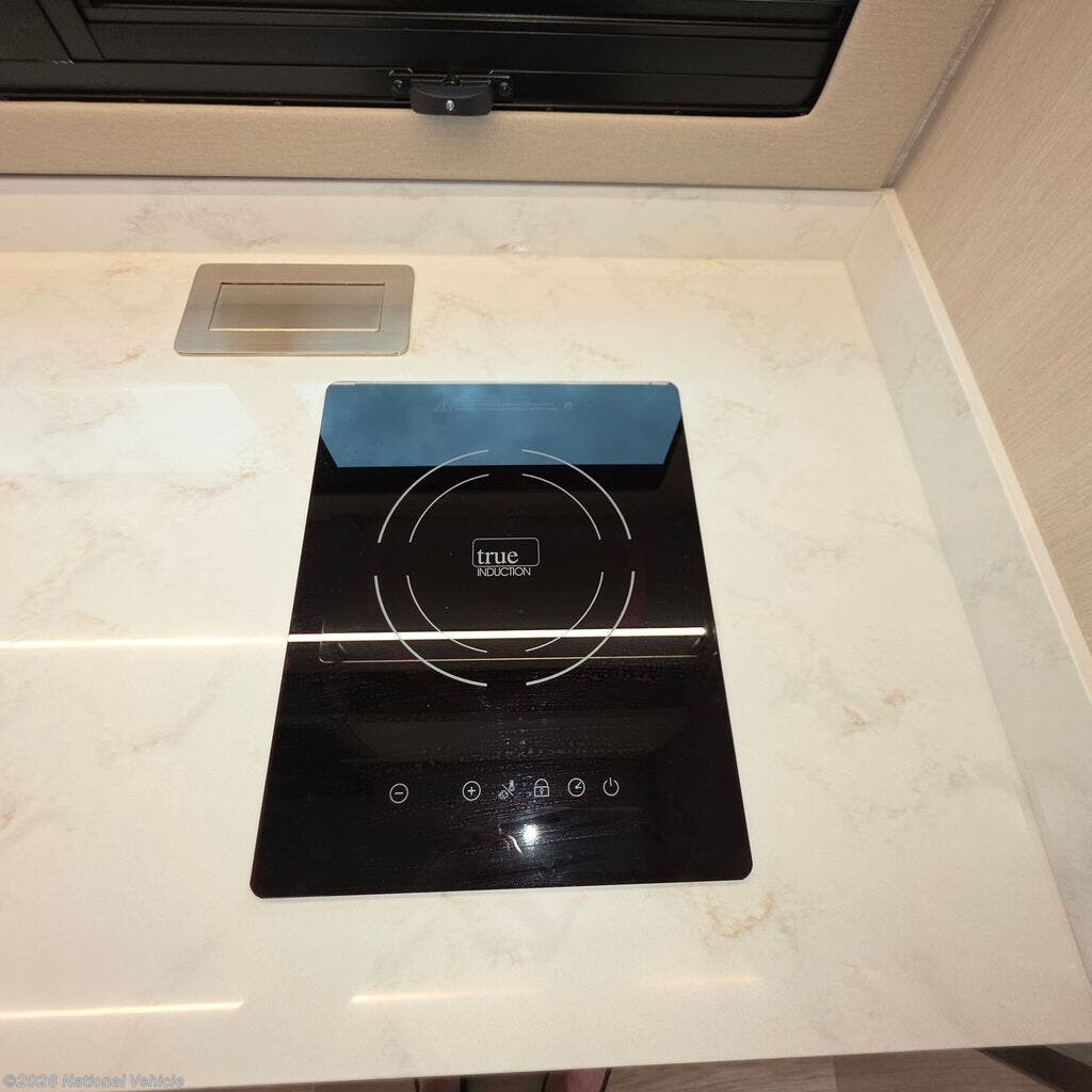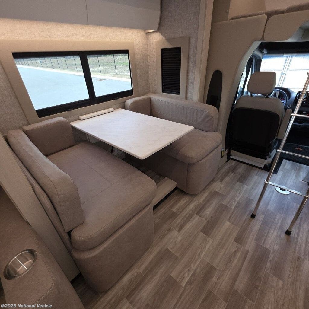 The thoughtfully designed floorplan centers around comfort and versatility. The rear living area offers generous seating and relaxation space, perfect for unwinding after a day of travel. Large panoramic windows bathe the interior in natural light and frame scenic views wherever you park.