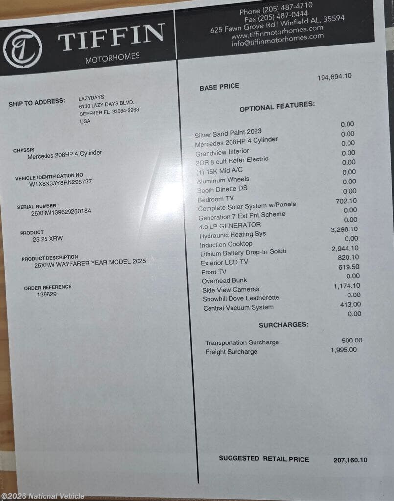 Looking to buy a 2025 Tiffin Wayfarer Class C RV?