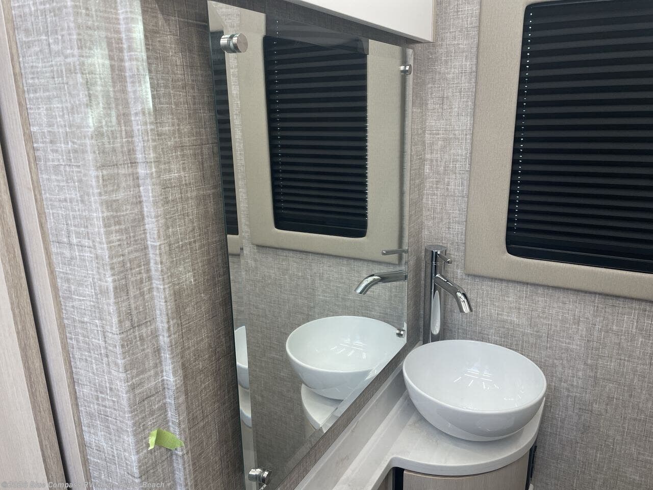 Head out to explore whenever the mood hits you! This coach provides a comfortable and luxurious way to travel from the cab features to the sleeping accommodations. The driver and passenger will have a tray for smartphones with charging ports, heated/electric adjustable mirrors, heated seats, and they might like to add the side-view cameras option. You can dine at the tri-fold sofa after whipping up a meal using the kitchen appliances including a stainless steel convection microwave. The split bathroom includes a shower along one side and a private toilet and sink on the opposite so two people can get ready at the same time. At night, fall quickly to sleep on the rear twin beds which allow you easy access to the bathroom, plus the nightstand will come in handy to place your cellphones and drinks. You will also find overhead cabinets for storage, and you might like to add an optional TV to watch.
