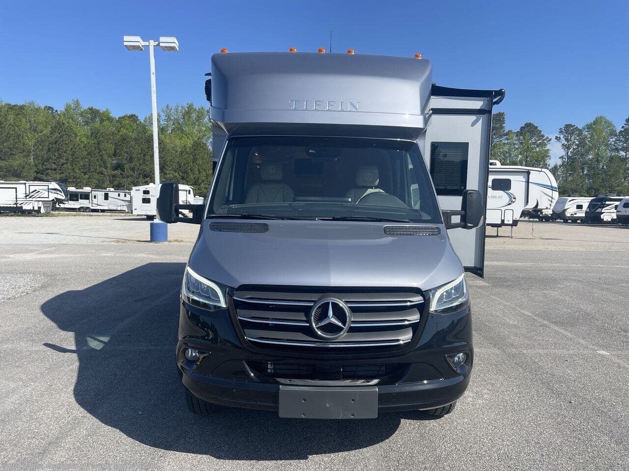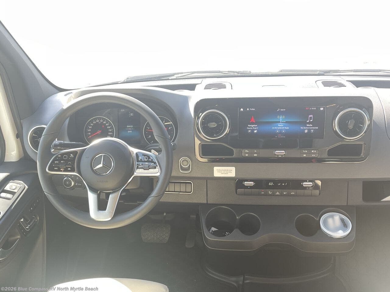 With any Wayfarer Class C diesel coach by Tiffin Motorhomes you will enjoy luxury features both inside and out. There are one-piece molded gel-coat fiberglass front and rear caps plus full-body paint and two layers of clear coat for added protection. The Mercedes-Benz 3500XD dual wheel cutaway chassis provides a strong foundation, and the 2.0L V4 turbo diesel high output 208 HP diesel engine with 332 lb-ft torque will keep you going adventure after adventure! You will love the drive just as much as the destination with adjustable captain's seats that are also heated, intelligent navigation, and a Mercedes-Benz MBUX multimedia system with a 10.25" touchscreen. Wherever you decide to roam, you will be met with interior comforts that include high pressure laminate cabinets, solar and privacy shades, solid surface galley countertops and task lighting, and a wardrobe in the bedroom to keep your space tidy.