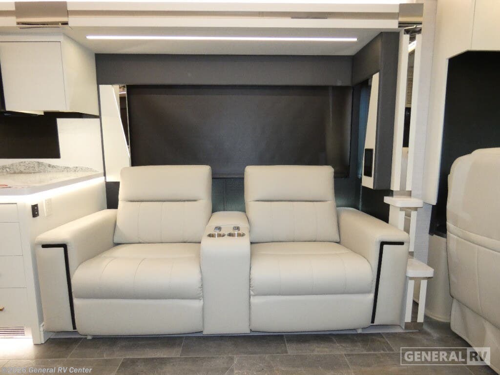 The 2025 Tiffin Zephyr 45 PZ is the epitome of luxury and innovation on the road. This stunning motorhome, built on a robust Freightliner Powerglide chassis and powered by a mighty Cummins I6 Diesel Pusher engine, offers an impressive 605 horsepower and 1950 lb-ft of torque, ensuring a smooth and powerful drive. With a spacious length of 45 feet, this RV is designed to comfortably accommodate up to eight guests, featuring a king-sized bed and two convertible sleeping areas. The heart of this home on wheels is its center kitchen, equipped with modern appliances including a full-size electric refrigerator and a convection cooktop with two burners, ideal for preparing gourmet meals while traveling. The Zephyr 45 PZ boasts a thoughtful floorplan that includes a front living area, creating a welcoming space for relaxation and entertainment. The dual powered retractable awnings extend your living space outdoors, perfect for enjoying scenic views. Inside, the luxurious center bedroom offers a retreat-like atmosphere with a 72" x 80" Power Smart king bed. The rear and center bath areas provide convenience and privacy, while the washer/dryer prep ensures extended comfort on long journeys. With a generous water capacity and ample storage, this motorhome is ready for any adventure. For more information, visit your nearest General RV dealership and explore the unparalleled experience the Tiffin Zephyr 45 PZ offers.