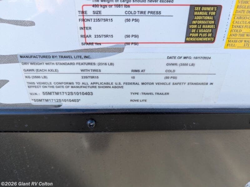Request More Info on this 2025 Travel Lite Rove Lite 14FB Offered for sale by Giant RV