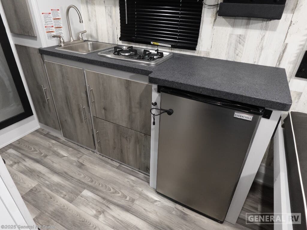 Discover the 2025 Travel Lite Rove Lite 14FL, a compact marvel designed for the adventurer who craves both comfort and mobility. This lightweight travel trailer, with a dry weight of just 1,846 pounds, is perfect for those looking to explore new horizons without the hassle of a heavy tow. Measuring 16.5 feet in length, the Rove Lite offers a cozy yet functional space, featuring a front living area that seamlessly transforms into a comfortable sleeping area with convertible beds. The efficient center kitchen is equipped with a two-burner cooktop and a compact electric refrigerator, making meal prep a breeze no matter where your journey takes you. The thoughtful layout includes a rear bath with a convenient curtain shower, ensuring you have all the essentials for a comfortable trip. With a 9-foot powered retractable awning, you can extend your living space outdoors, enjoying the scenery in style. The trailer's fresh, gray, and black water tanks provide ample capacity for extended trips, while the automatic heater keeps you cozy on cooler nights. Experience the freedom of the open road with the Rove Lite 14FL, where every detail is designed to enhance your travel experience. For more information or to see this model in person, visit your nearest General RV dealership.