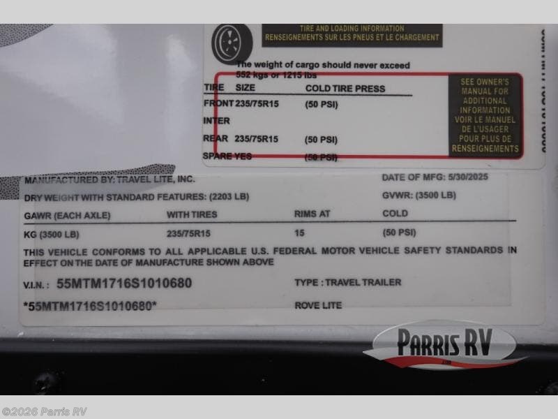 Request More Info on this 2025 Travel Lite Rove Lite 16LE Offered for sale by Parris RV