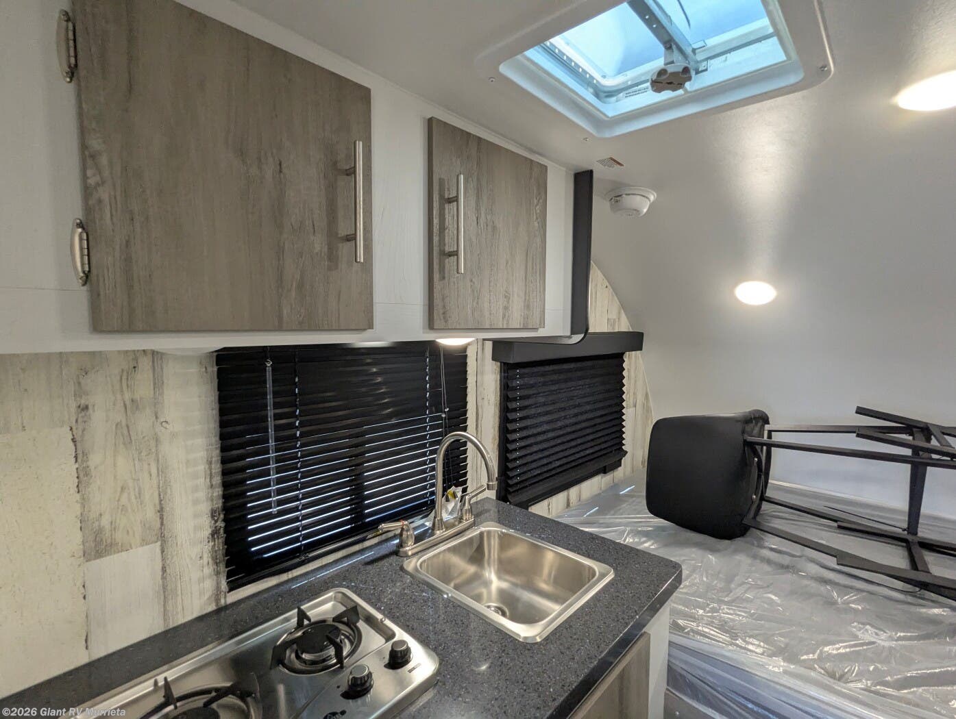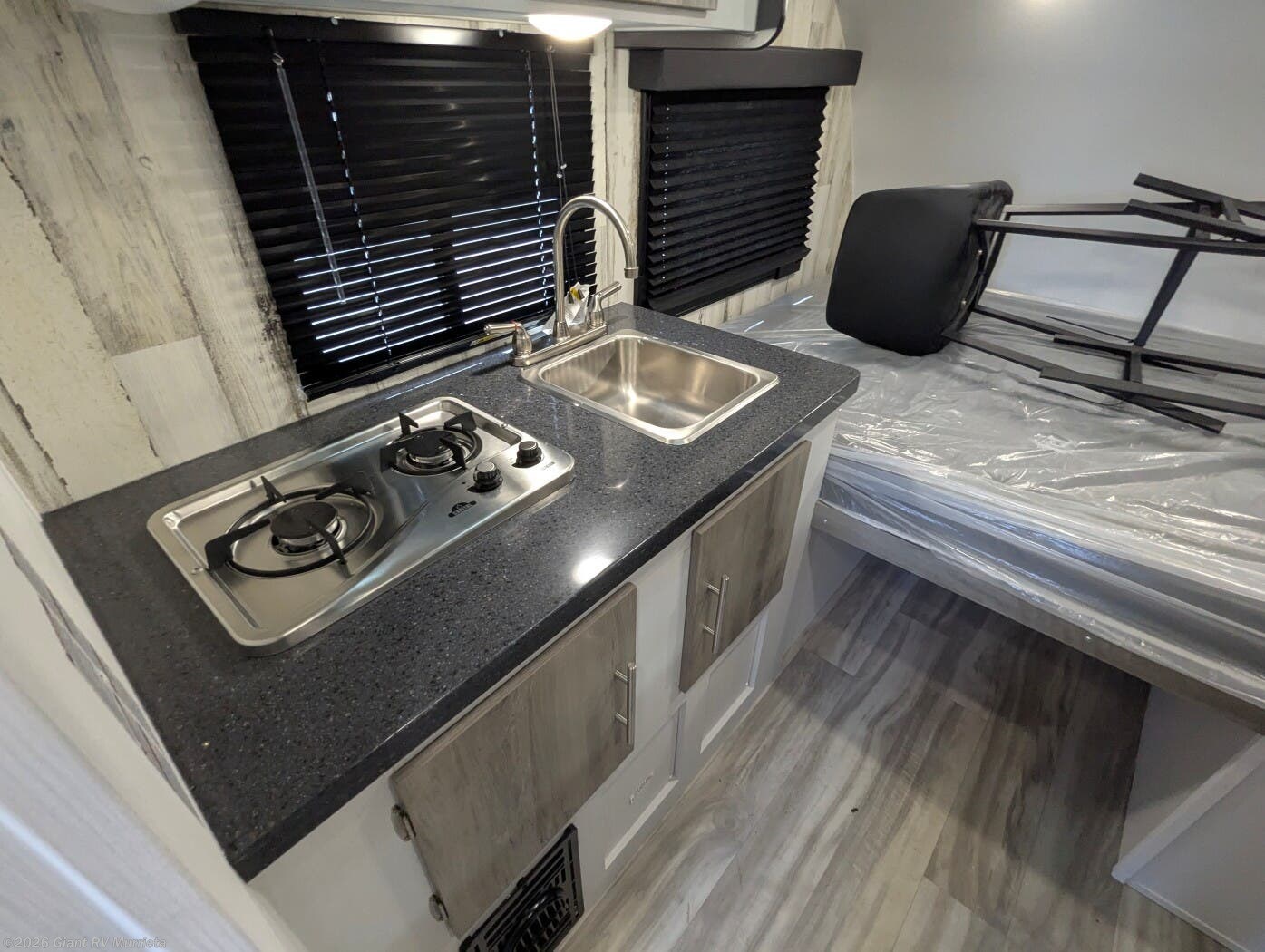 - Efficient Kitchen: 3.3 cu. ft. 12V refrigerator, two-burner stovetop, and single-bowl sink for streamlined meal prep.