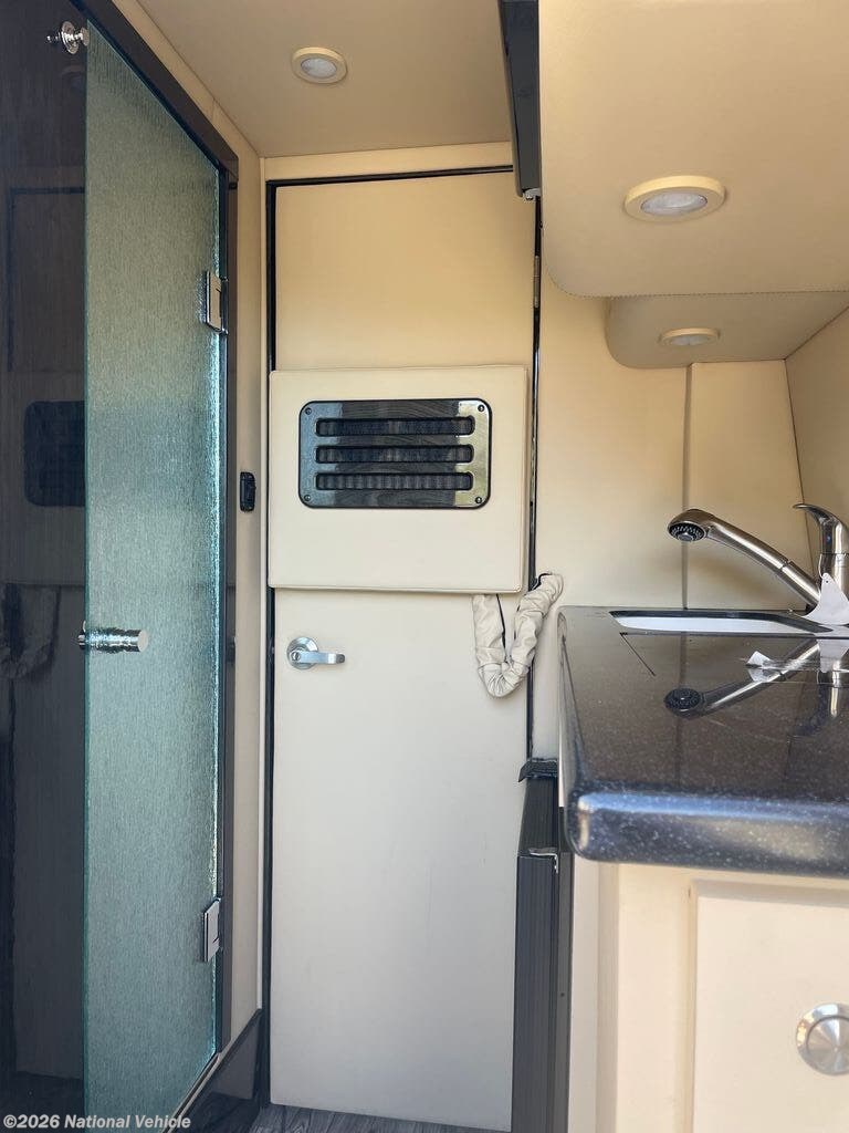Interior & Layout: Known for having a rare, full-sized rear bathroom (with shower and toilet) in a Class B, alongside a kitchenette with a convection microwave and induction cooktop.