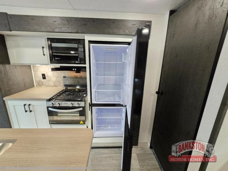 With any Sienna travel trailer by Venture RV, you will enjoy a lightweight unit, convenient amenities, and a durable construction that includes a BAL NXG-bolted frame. There is also a heated and enclosed one-piece underbelly, residential fiberglass insulation, and a reflective PVC roof membrane within the Weather-Shield Package to help extend your camping season. Outside, the BAL 5.0 power stabilizer jacks and power tongue jack will have you set up in no-time, and the Venture RV bottle opener/dog tie down will make it easy to bring your furry friends along. Head inside to enjoy the modern farmhouse design, along with Beauflor throughout with no carpet, custom backsplash, large underbed storage, and a bath skylight to name a few comforts!