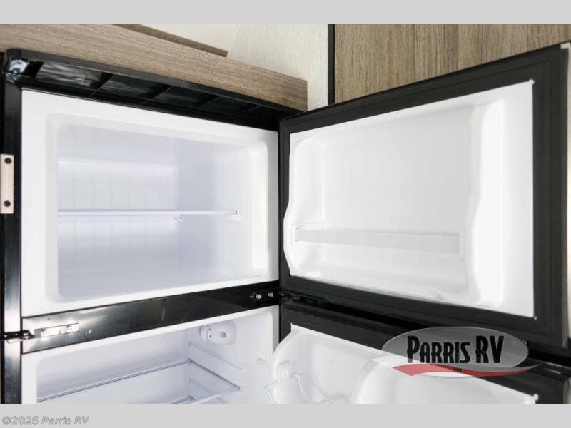 Get ready for a great camping experience where you can take along your favorite ride-on toys, kayaks, or other items that you may not normally have room to load as this toy hauler features a 6' 9" cargo width and 10' 11" cargo length. Once unloaded, set up with the rear bed that will make for a great night's rest. The front of this unit is shared with the wet bath and kitchen. Here, you can make meals on the two burner stove or in the microwave oven, and there is a refrigerator for perishables.