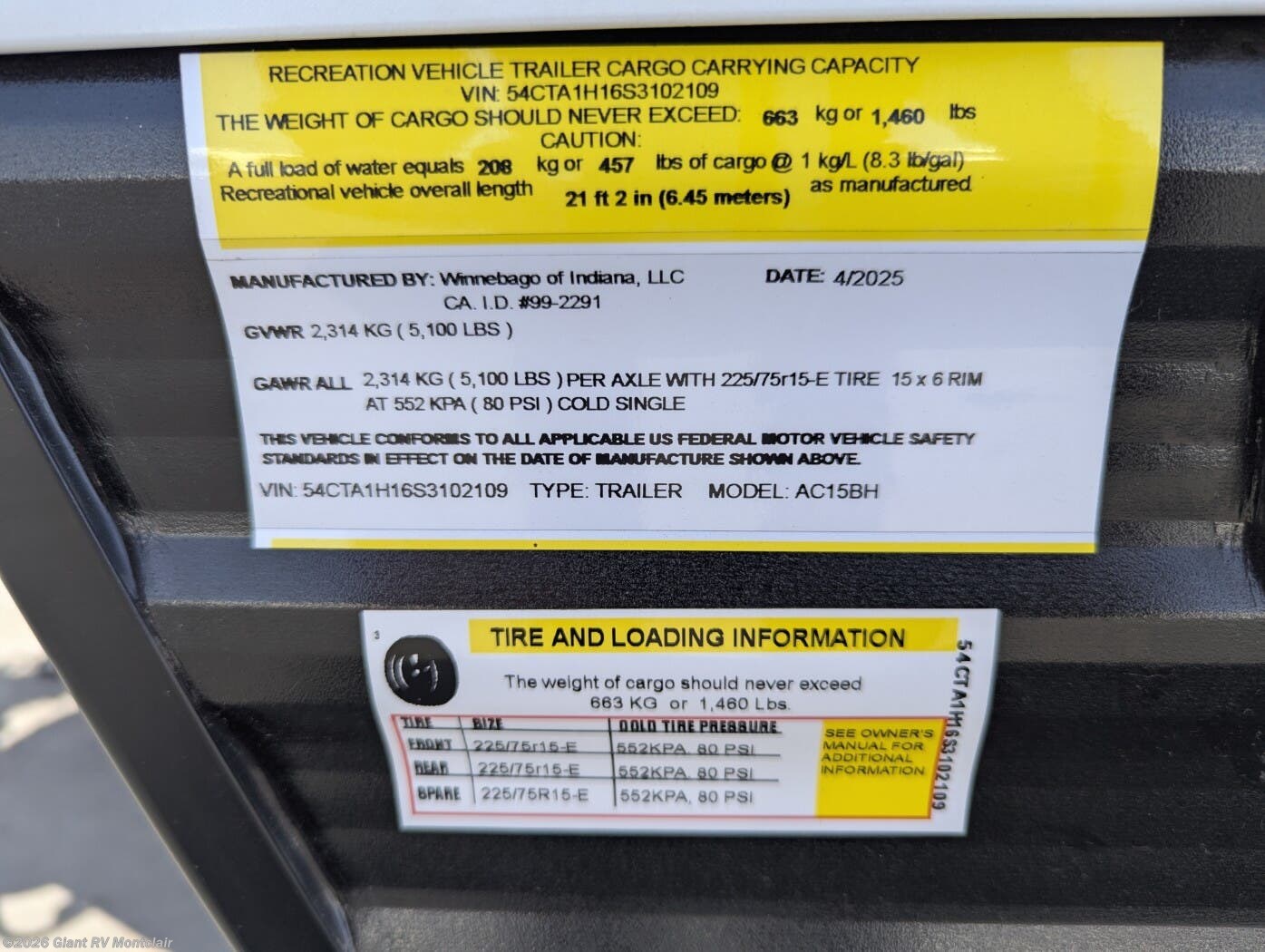Discover big comfort in a compact package with the 2025 Winnebago Access 15BH, a versatile travel trailer built for families, friends or weekend getaways. This efficient model features a front queen bed, rear bunk beds, and a convertible dinette—making it perfect for those who want space, flexibility, and ease of towing all in one. Thoughtfully crafted and well-appointed, the 15BH delivers modern amenities without the bulk.