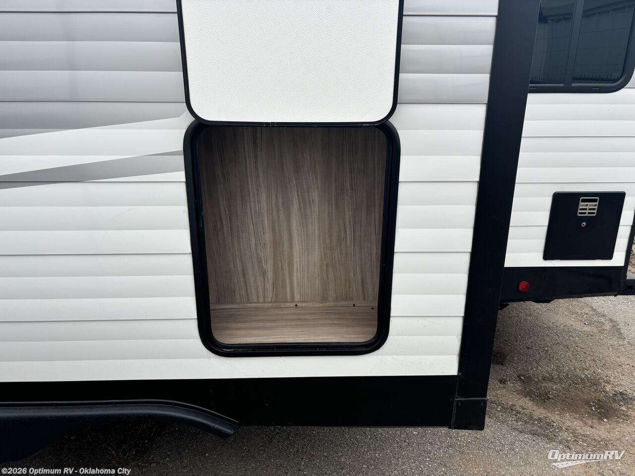 Enjoy your Access in the great outdoors! This unit features a large slide for added interior space inside. There is sleeping for two to six depending on size and furniture choices starting with the front private bedroom featuring a space saving sliding door. You can also sleep two on the optional tri-fold sofa within the slide, and the dinette opposite can be converted for one or two little ones. You will find ample storage throughout in overhead storage cabinets, under bed storage and wardrobes, plus more. The kitchen appliances are also within the large slide, plus you will find a nice size sink in the rear roadside corner with storage both above and below. A convenient rear corner bathroom allows you to skip the use of the camp facilities and enjoy cleaning up in the privacy of your own unit. Here you will find a 30" x 36" shower, porcelain toilet and a vanity with sink and corner medicine cabinet. You will also appreciate the exterior storage door within the slide and there is also convenient pass-through storage for your larger camp items to be neatly tucked away when not in use.