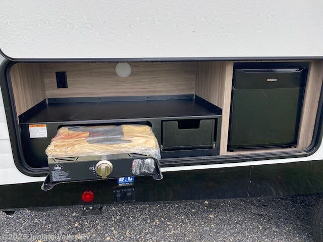 Awning, Detachable Power Cord, Electric Jack, Enclosed Underbelly, Exterior Refrigerator, External Shower, Front Overhead Storage, Griddle, Heated Underbelly, Hitch, Outside Kitchen, Pass Thru Storage, Power Awning, Power Hitch Jack, Power Roof Vent, Power Stabilizer Jacks, Roof Vent, Screen Door, Skylight, Spare Tire Kit, Tinted Windows -