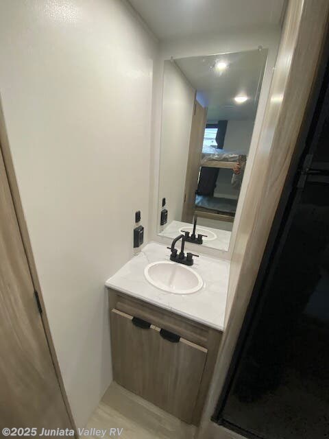 Booth Dinette, Bunk Beds, Dinette, Dinette Bed, Kitchen Sink, Living Quarters, Medicine Cabinet, Overhead Cabinetry, Pantry, Pet Friendly, Pocket Door(s), Queen Bed, Queen Mattress, Roof Vents, Self Contained, Shower, Sofa Bed, Solid Surface Countertops, Toilet, Vanity, Wardrobe(s) -
