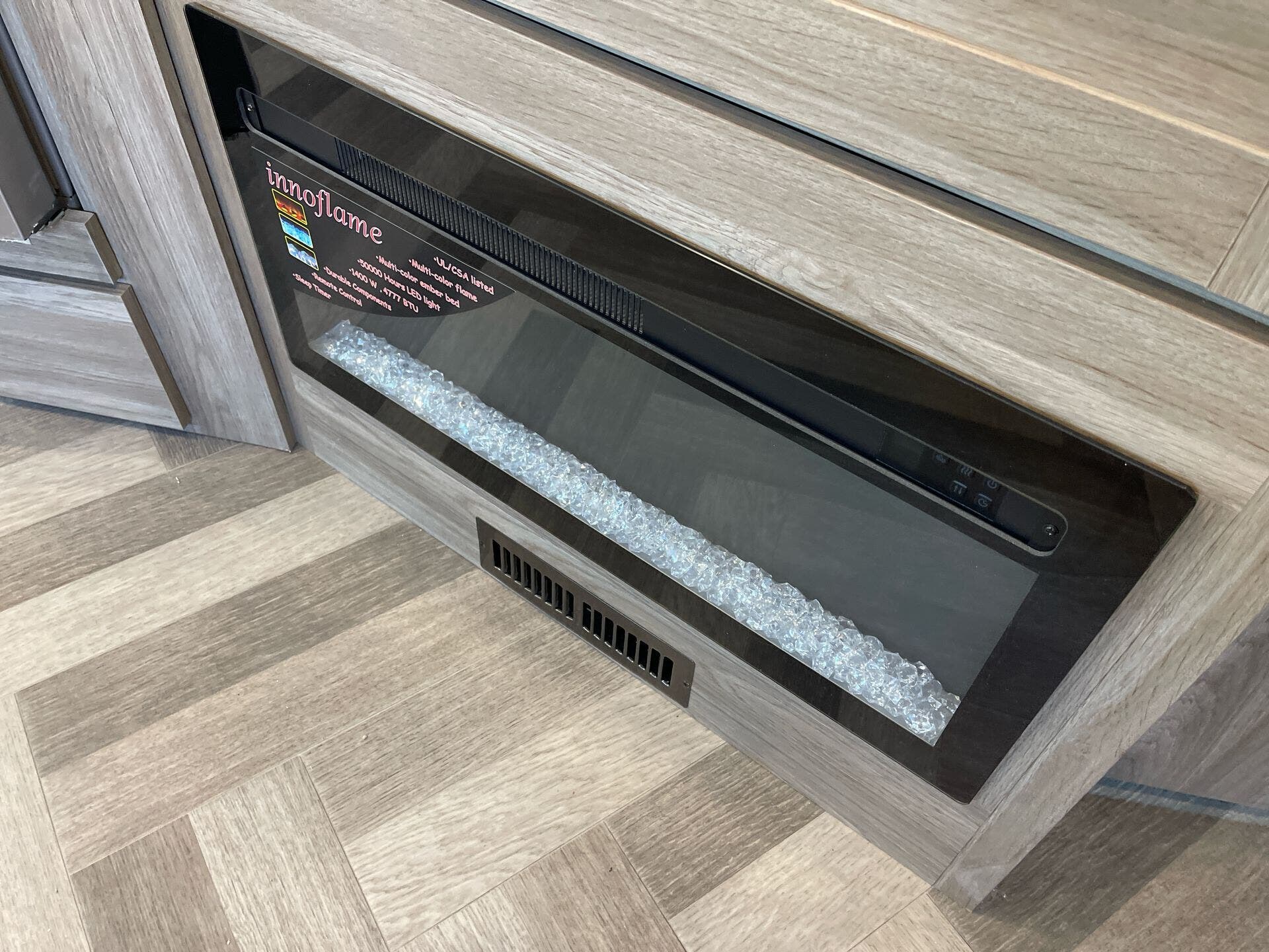 Booth Dinette, Fireplace, King Size Bed, Medicine Cabinet, Roof Vents, Shower, Toilet -