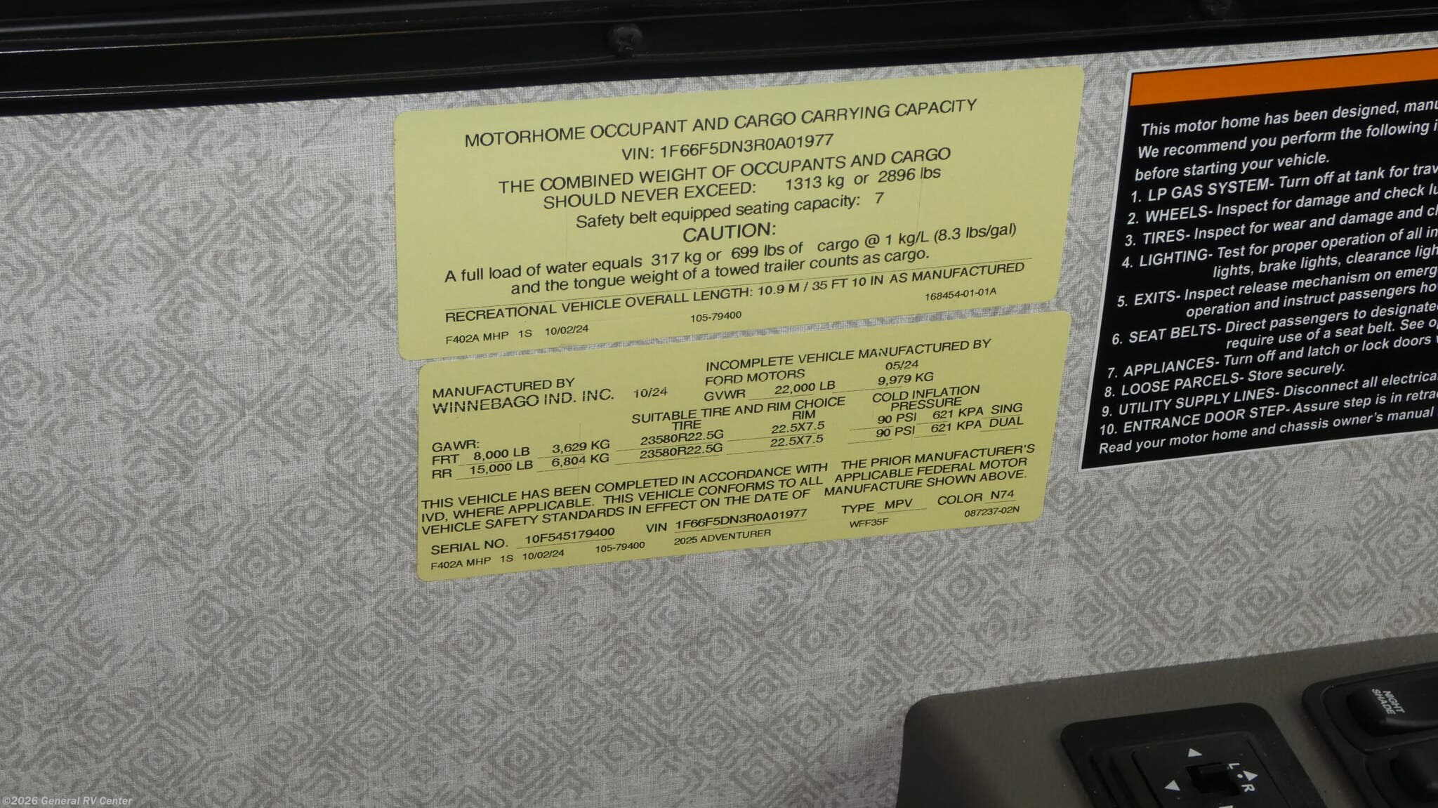 Request More Info on this 2025 Winnebago Adventurer 35F Offered for sale by General RV Center