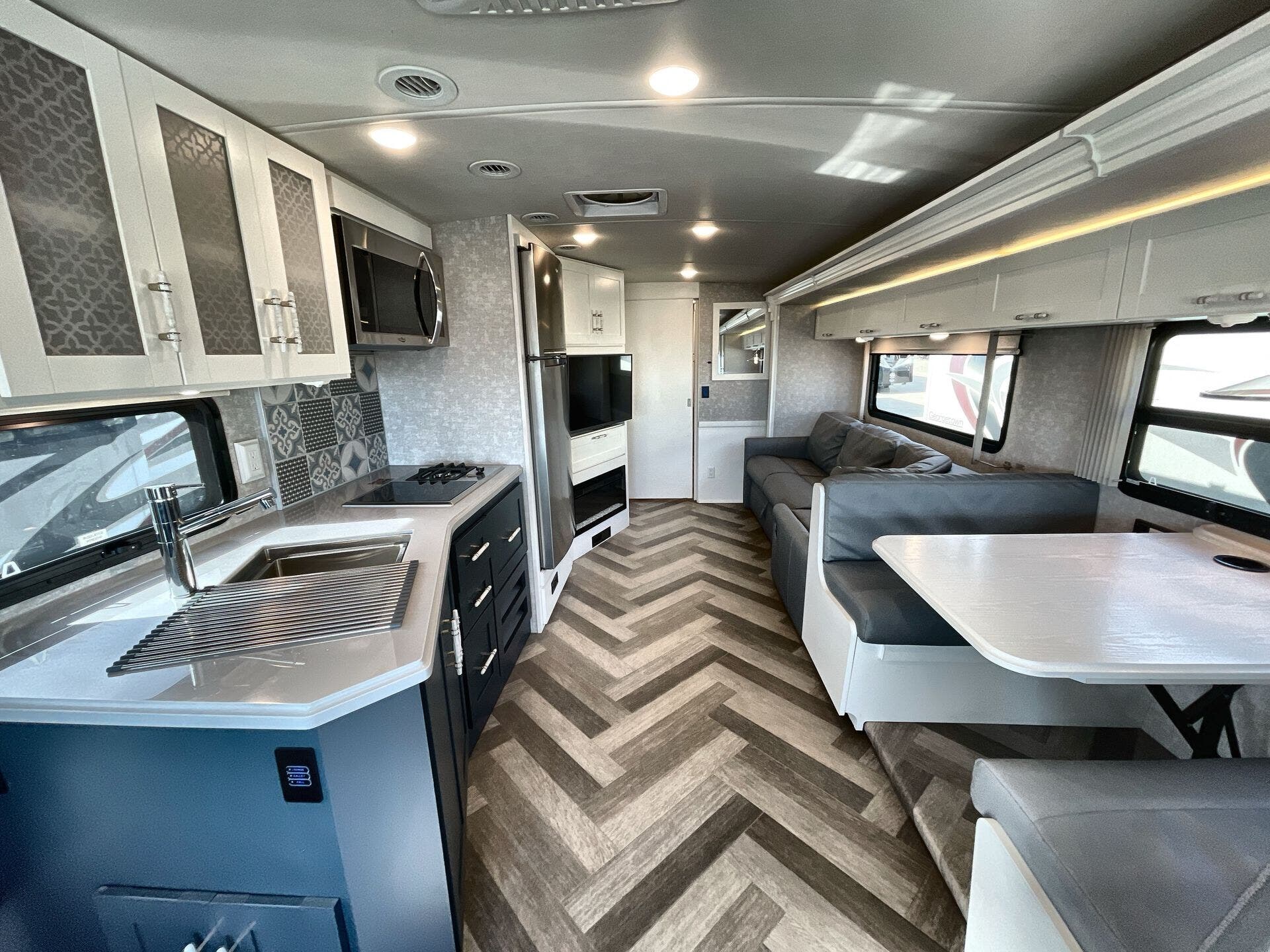 The Winnebago Adventurer is a capable and comfortable recreational vehicle designed for memorable road trips. Built on the Ford F53 chassis with a robust 7.3L V8 gas engine, this 2025 Class A motorhome delivers reliable power for cruising highways and climbing hills. With a length of 35 feet 10 inches, a width of 8 feet 5 inches, and a height of 12 feet 1 inch, it presents a spacious living area without compromising maneuverability. Fresh on the lot with a low mileage of 1,897 miles, this Adventurer is ready to hit the road in style.