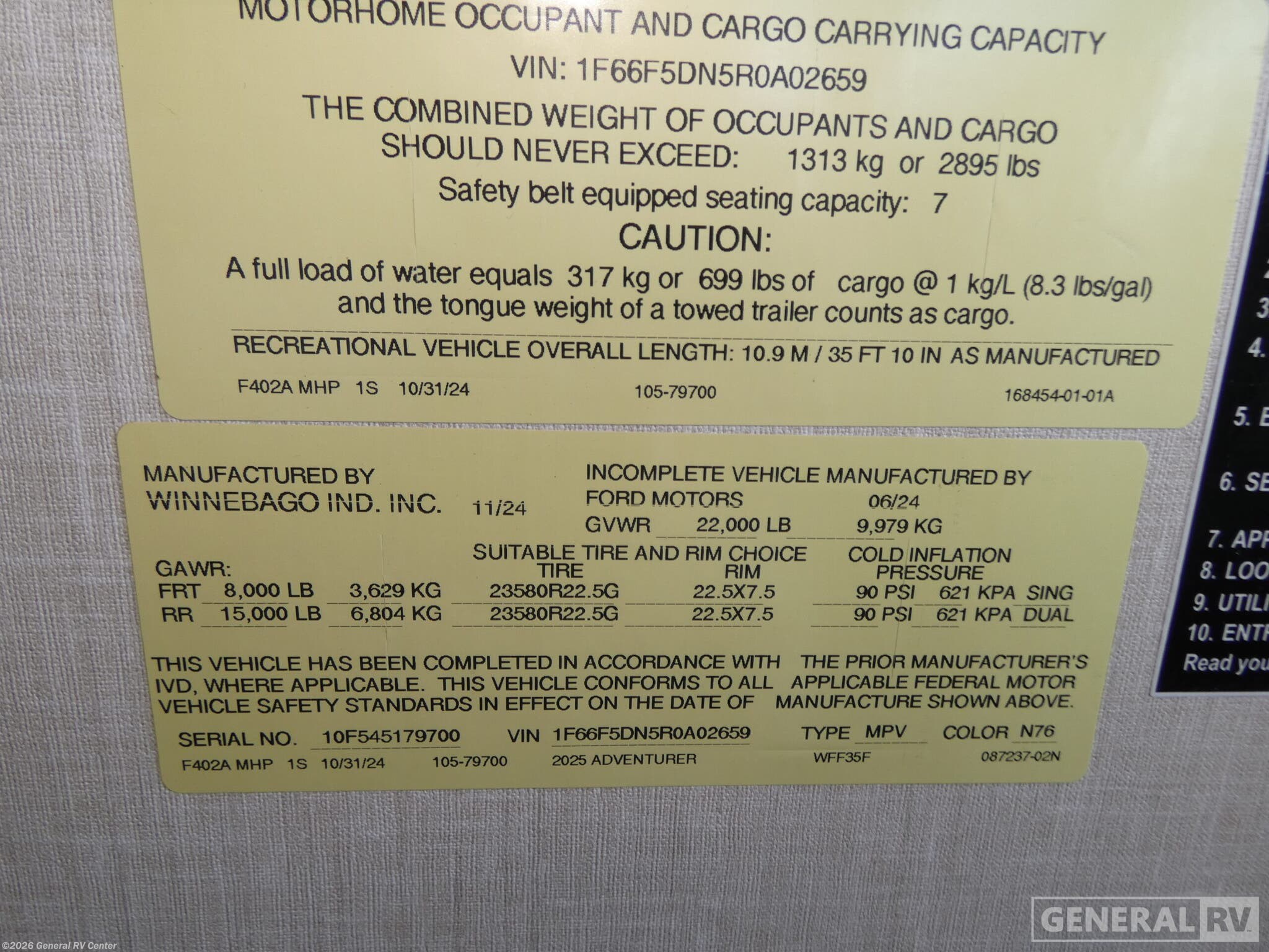 Request More Info on this 2025 Winnebago Adventurer 35F Offered for sale by General RV Center