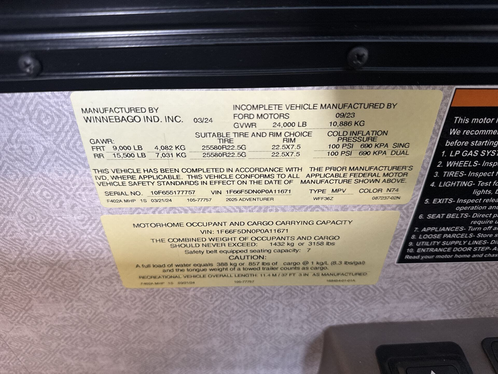 - Chassis: Class A motorhome • Brand: Winnebago • Model: Adventurer